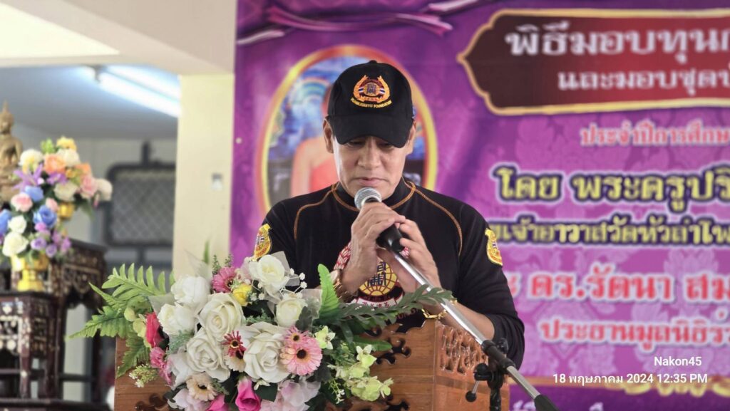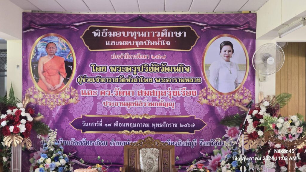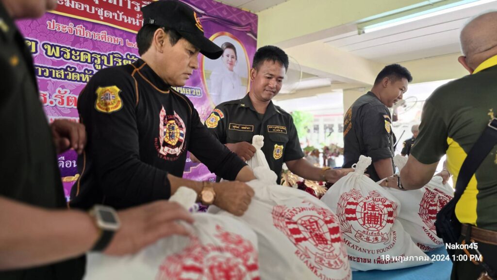 ในพิธียังมีการมอบ เครื่องเรียนสมุด,ดินสอ,ไม้บรรทัด และ เครื่องกีฬา ให้กับโรงเรียน