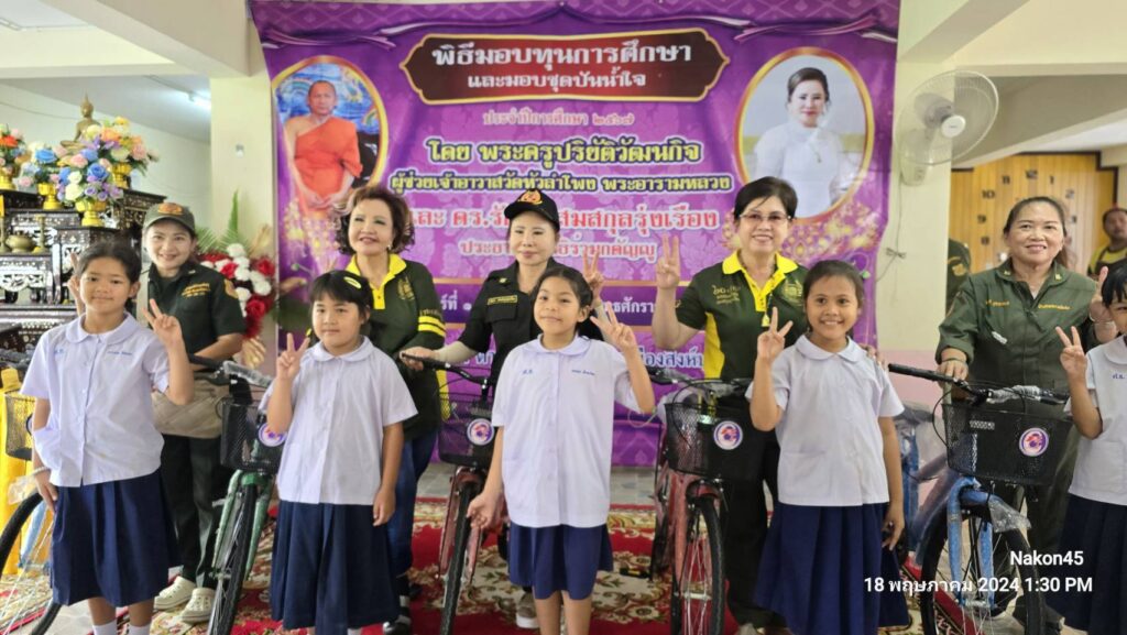 และ รถจักรยานให้กับนักเรียนที่มีบ้านห่างไกลจากโรงเรียน อีก 20 คัน