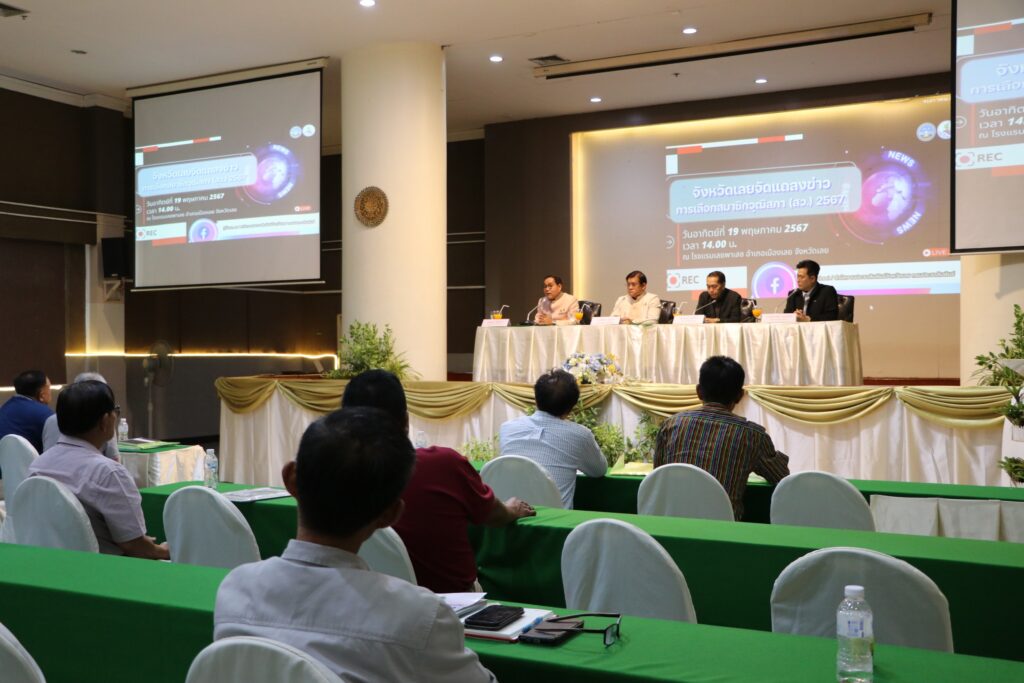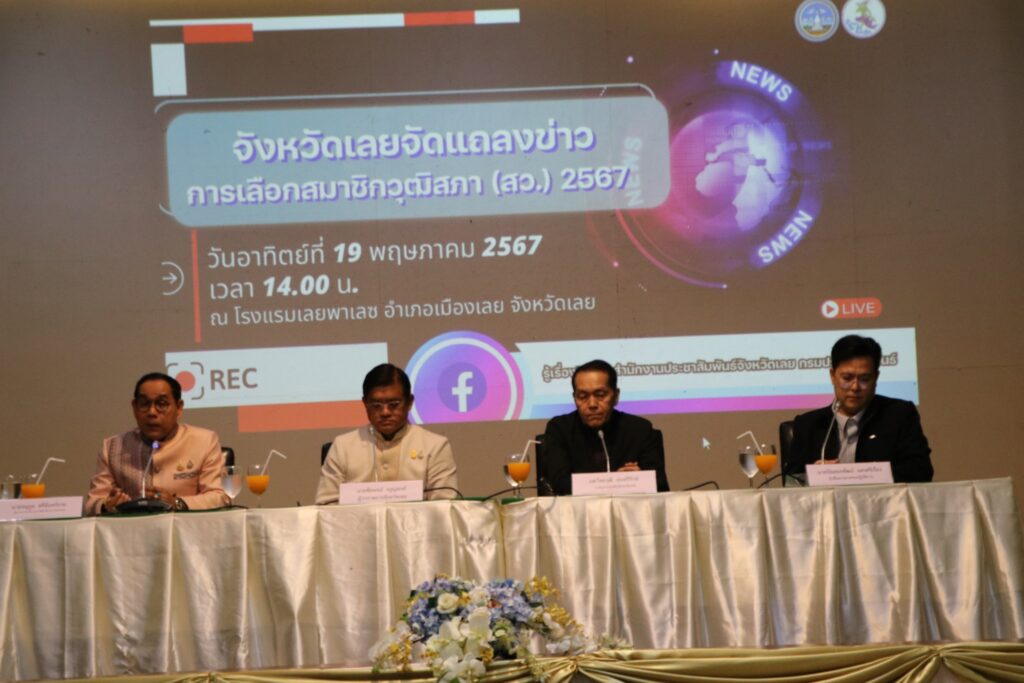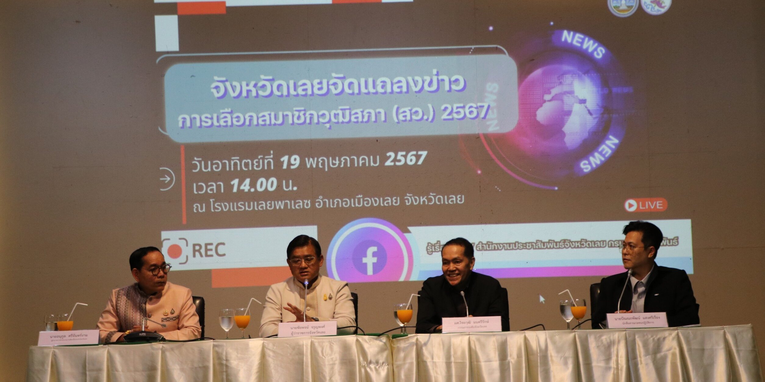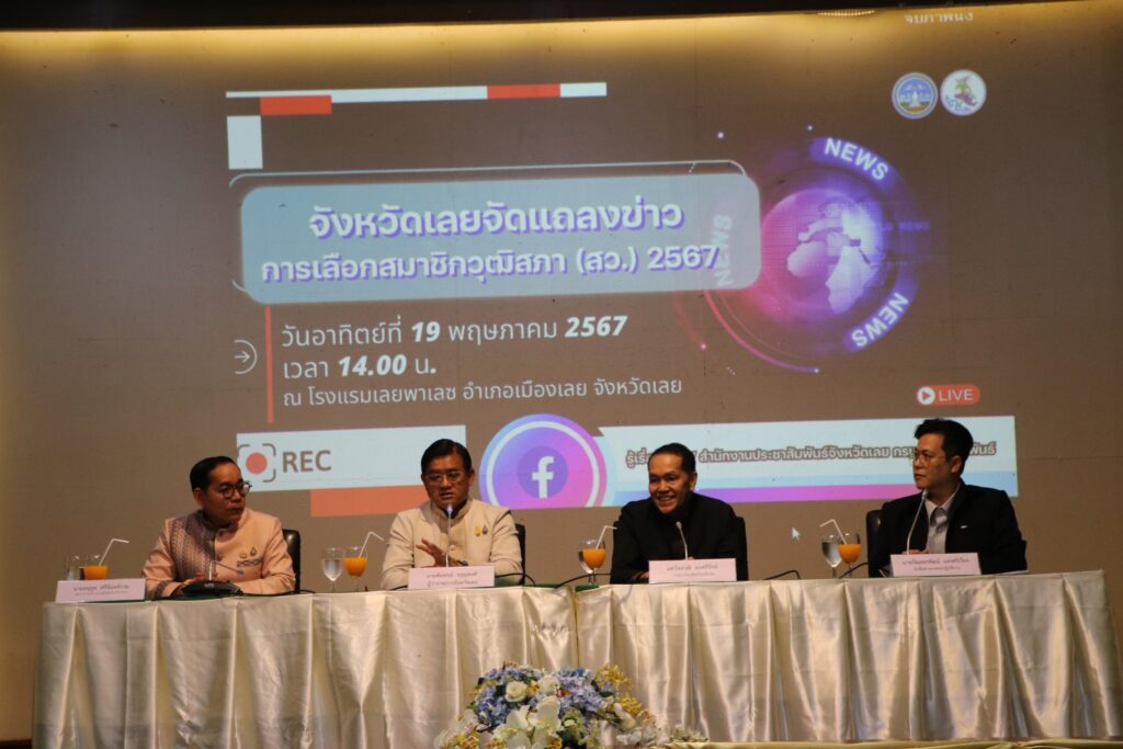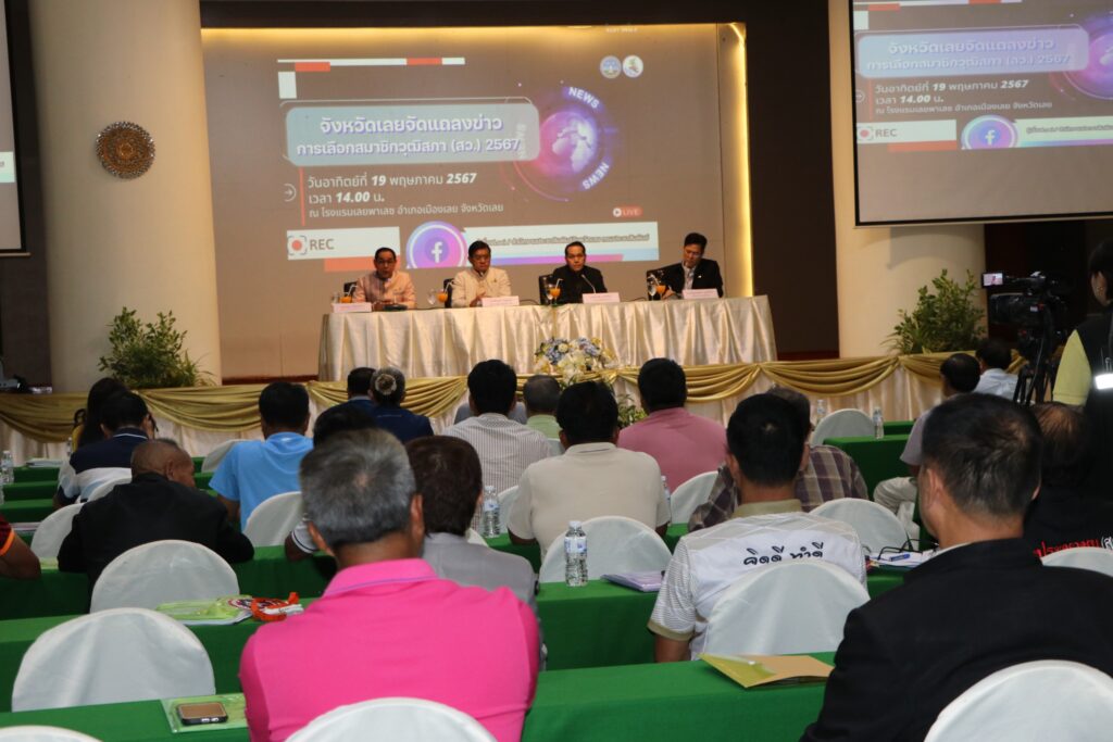 วันที่ 19 พ.ค.67 เวลา 14.00 น. นายชัยพจน์ จรูญพงศ์ ผู้ว่าราชการจังหวัดเลย พร้อมด้วย นายอนุกูล ศรีจันทร์งาม ผู้อำนวยการสำนักงานคณะกรรมการการเลือกตั้งประจำจังหวัดเลย ผู้ช่วยศาสตราจารย์ไชยวุฒิ มนตรีรักษ์ ร่วมกันแถลงข่าวการเลือกสมาชิกวุฒิสภา (สว.) ของจังหวัดเลย โดยมีส่วนราชการ ประชาชนผู้ที่มีความสนใจจะลงสมัครรับเลือกสมาชิกวุฒิสภาจากทุกกลุ่มอาชีพ จาก 14 อำเภอ ร่วมแถลงข่าว ที่ห้องประชุมชัยพฤกษ์ โรงแรมเลยพาเลซ อำเภอเมืองเลย จังหวัดเลย เพื่อสร้างความรู้ความเข้าใจให้ทุกภาคส่วน และสื่อมวลชน ทราบถึงขั้นตอนและวิธีการให้ได้มาซึ่งสมาชิกวุฒิสภา และปลุกจิตสำนึกให้ประชาชนได้ตระหนักและเห็นถึงความสำคัญของการมีส่วนร่วมทางการเมือง