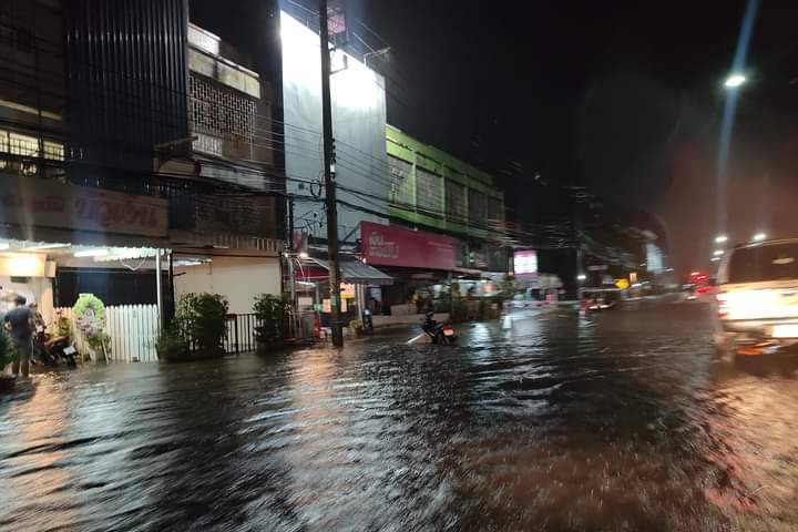 เกิดน้ำท่วมขังบนถนนนารายณ์มหาราช ทั้งขาเข้าและขาออก