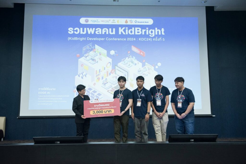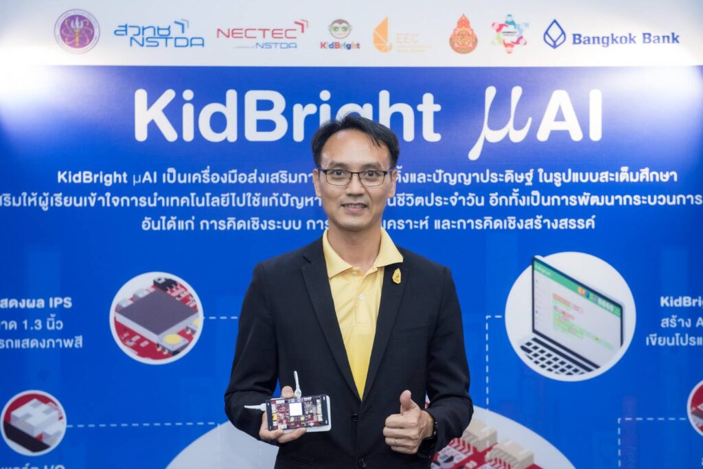 ผู้อำนวยการ (สวทช.) กล่าวว่า สำหรับในปี 2567 ทีมวิจัยได้ให้ความสำคัญกับการสอนเทคโนโลยีปัญญาประดิษฐ์แก่เยาวชนในโรงเรียน โดยเฉพาะเทคโนโลยี Edge AI ซึ่งเป็นการผสมผสานระหว่างปัญญาประดิษฐ์ และการประมวลผลร่วมกับอุปกรณ์เอดจ์ เช่น สมาร์ทโฟน เซนเซอร์ และอุปกรณ์ IoT ทำให้อุปกรณ์เหล่านั้นสามารถประมวลผลข้อมูลและตัดสินใจได้แบบเรียลไทม์ ทีมวิจัยจึงได้พัฒนาอุปกรณ์สำหรับสนับสนุนให้นักเรียนทั่วประเทศสามารถเข้าถึงเทคโนโลยี Edge AI ผ่าน บอร์ด“KidBright μAI” (คิดไบร์ทไมโครเอไอ) ซึ่งเป็นเครื่องมือสำหรับส่งเสริมการเรียนรู้โค้ดดิ้ง อินเทอร์เน็ตทุกสรรพสิ่ง และปัญญาประดิษฐ์ ในรูปแบบสะเต็มศึกษา บนบอร์ดได้ติดตั้งจอแสดงผล ไมโครโฟน เซนเซอร์ต่าง ๆ รวมถึงสามารถเชื่อมต่ออุปกรณ์ภายนอกผ่านการสื่อสารไร้สาย หรือ WiFi ทำให้ผู้เรียนสามารถสร้างโมเดลปัญญาประดิษฐ์ รวมถึงชุดคำสั่งแบบบล็อกเพื่อควบคุมการทำงานของบอร์ดผ่าน KidBright μAI IDE (คิดไบร์ทไมโครไอดีอี) ซึ่งสามารถพัฒนาเป็นระบบอัตโนมัติที่มีการประมวลผลปัญญาประดิษฐ์แบบเรียลไทม์ได้