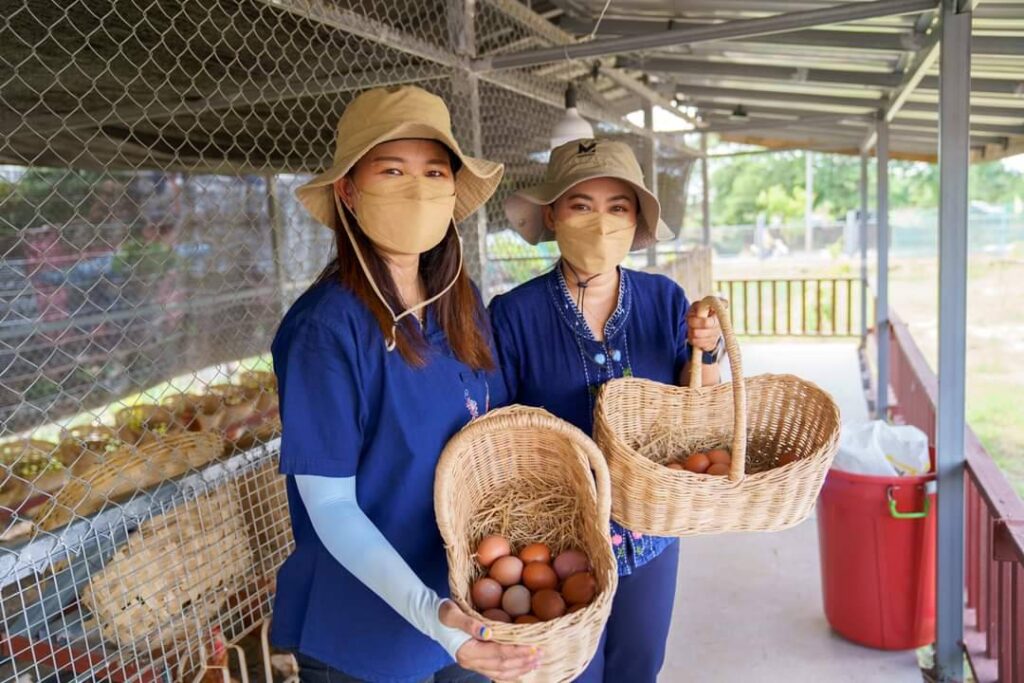 - เก็บไข่ไก่อารมณ์ดีภายในฟาร์ม