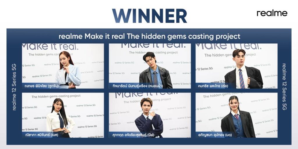 โครงการ The Hidden Gems Casting Project ตอกย้ำวิสัยทัศน์ของ realme ในการสนับสนุนคนรุ่นใหม่ให้กล้าแสดงออกอย่างสร้างสรรค์และเป็นตัวเองในเวอร์ชันที่ดีที่สุดภายใต้แนวคิด Make it real! โดยเปิดโอกาสให้หนุ่มสาวอายุตั้งแต่ 18 – 25 ปี สมัครเข้าประกวดแสดงความสามารถเพื่อทำการคัดเลือกผู้ชนะจำนวน 6 คนเซ็นสัญญาเข้าทำงานในสังกัด “คุณเกล้า น้ำพราว” ผู้จัดการนักแสดงชื่อดังและยังเป็นผู้จัดการส่วนตัวของดาราสาวชื่อดัง “ใหม่” ดาวิกา โฮร์เน่ แบรนด์แอมบาสเดอร์ของ realme 12 Series 5G ซึ่งเพิ่งเปิดตัวอย่างยิ่งใหญ่เมื่อต้นปีที่ผ่านมา