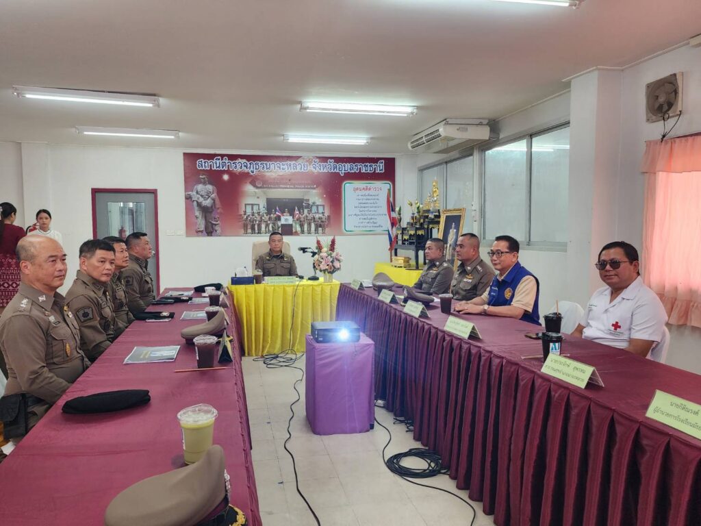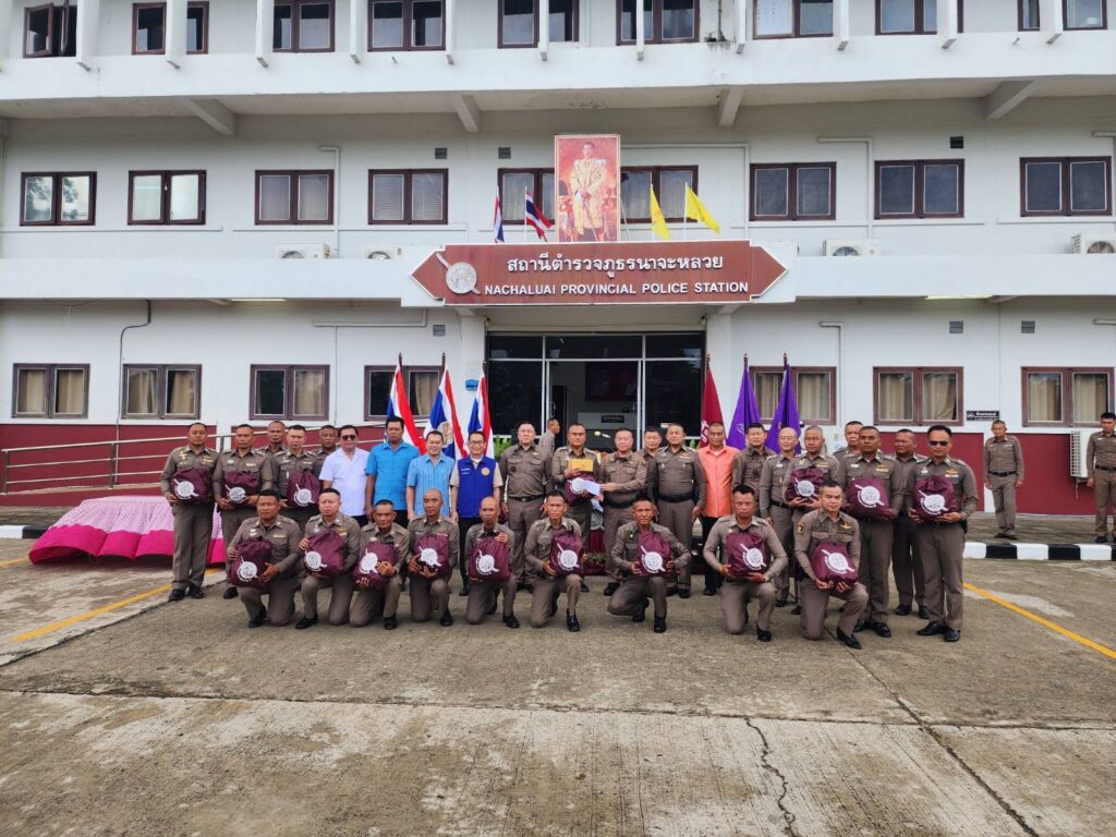 โดยมี พล.ต.ต.ประสงค์ เรืองเดช ผบก.ภ.จ.อุบลราชธานี,พ.ต.อ.วิกรม ลียะวณิช ผกก.ฝอ.ภ.จ.อุบลราชธานี,พ.ต.อ.สุรพงศ์ วรพิมพ์รัตน์ ผกก.สภ.นาจะหลวย,พ.ต.อ.อุทัย ปุชิน ผกก.สภ.ตระการพืชผล พ.ต.อ.ภาคภูมิ อุดนอก ผกก.สภ.บุณฑริก พร้อมด้วย นายอำเภอนาจะหลวย,ผอ.รพ.นาจะหลวย,ผอ.รร.มัธยมนาจะหลวย,สาธารณสุขอำเภอนาจะหลวย,กำนันตำบลนาจะหลวย และข้าราชการตำรวจ สภ.นาจะหลวย ให้การต้อนรับ