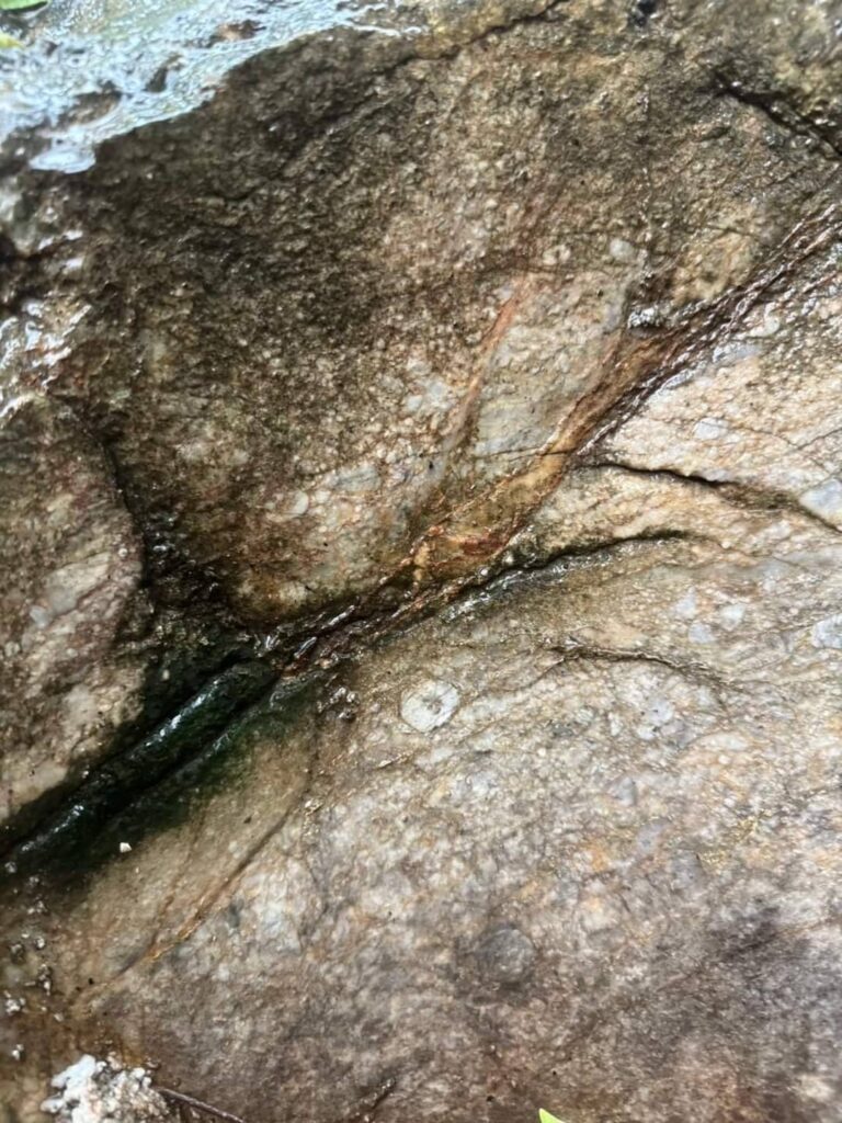 รอยเท้าสัตว์โบราณนี้ คนในพื้นที่เรียกว่ารอยเท้าราชสีห์ซึ่งคาดว่าจะเป็นรอยเท้าไดโนเสาร์ แต่หลังจากที่สำนักงานทรัพยากรธรณี ได้สำรวจแล้วปรากฏว่าไม่ใช่รอยเท้าของไดโนเสาร์ แต่เป็นการกัดเซาะหินปูนของน้ำทำให้มีลักษณะคล้ายรอยเท้าดังกล่าว แต่ทางเจ้าหน้าที่ได้ค้นพบซากฟอสซิล ไครนอยด์ หรือพลับพลึงทะเลบนหินนั้นซึ่งมีอายุมากกว่า 250 ล้านปี ซึ่งทางจังหวัดอุตรดิตถ์ จะได้ สนับสนุนให้เป็นแหล่งท่องเที่ยวของจังหวัดอุตรดิตถ์ อีกแหล่งหนึ่งต่อไป