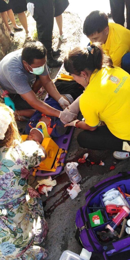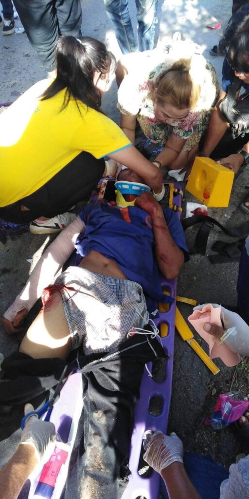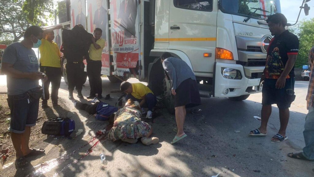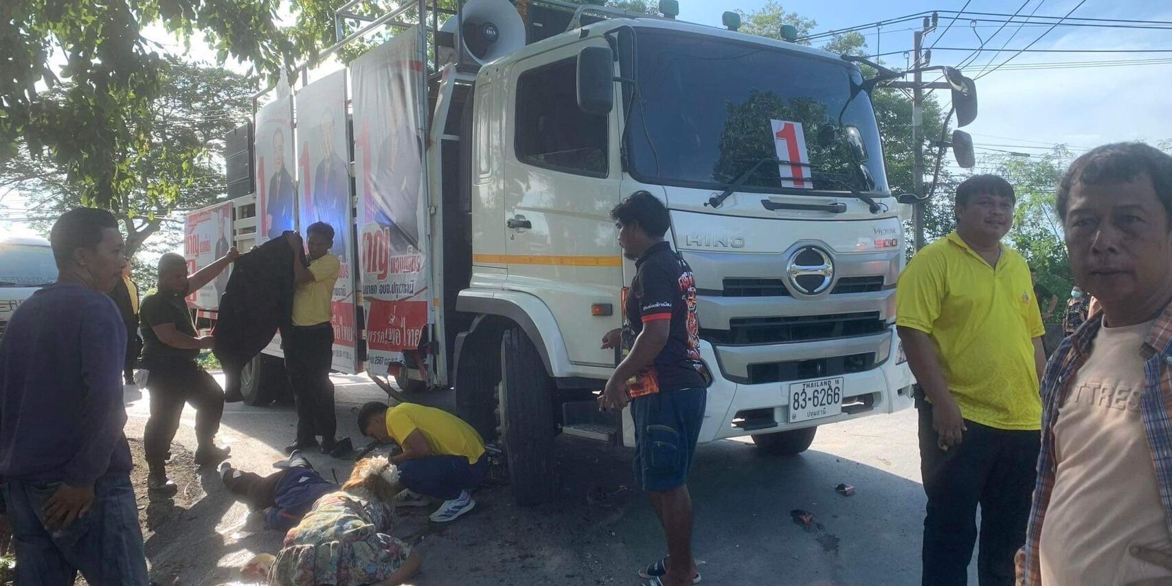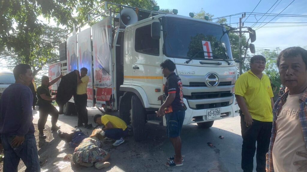 ที่เกิดเหตุพบรถหกล้อ ยี่ห้อฮีโน่ หมายเลขทะเบียน 83-6266 ปทุมธานี ซึ่งมีเครื่องขยายเสียงและแผ่นป้ายขนาดใหญ่ซึ่งเป็นรถหาเสียงของนายชาญ พวงเพ็ชร์ ผู้สมัครนายกอบจ.จังหวัดปทุมธานีเบอร์ 1 พรรคเพื่อไทย จอดอยู่กลางถนนซึ่งใต้ท้องรถพบรถจักรยานยนต์ยี่ห้อฮอนด้าเวฟหมายเลขทะเบียน วจข 366 กรุงเทพมหานคร ส่วนคนเจ็บทราบชื่อเด็กชายอัครวินท์ แก้วธรรม อายุ 17 ปี ซึ่งเป็นเด็กนักเรียนโรงเรียนสามโคก บาดเจ็บมีแผลบริเวณที่แขนขาเจ้าหน้าที่มูลนิธิปอเต็กตึ้งนำส่งโรงพยาบาลสามโคก