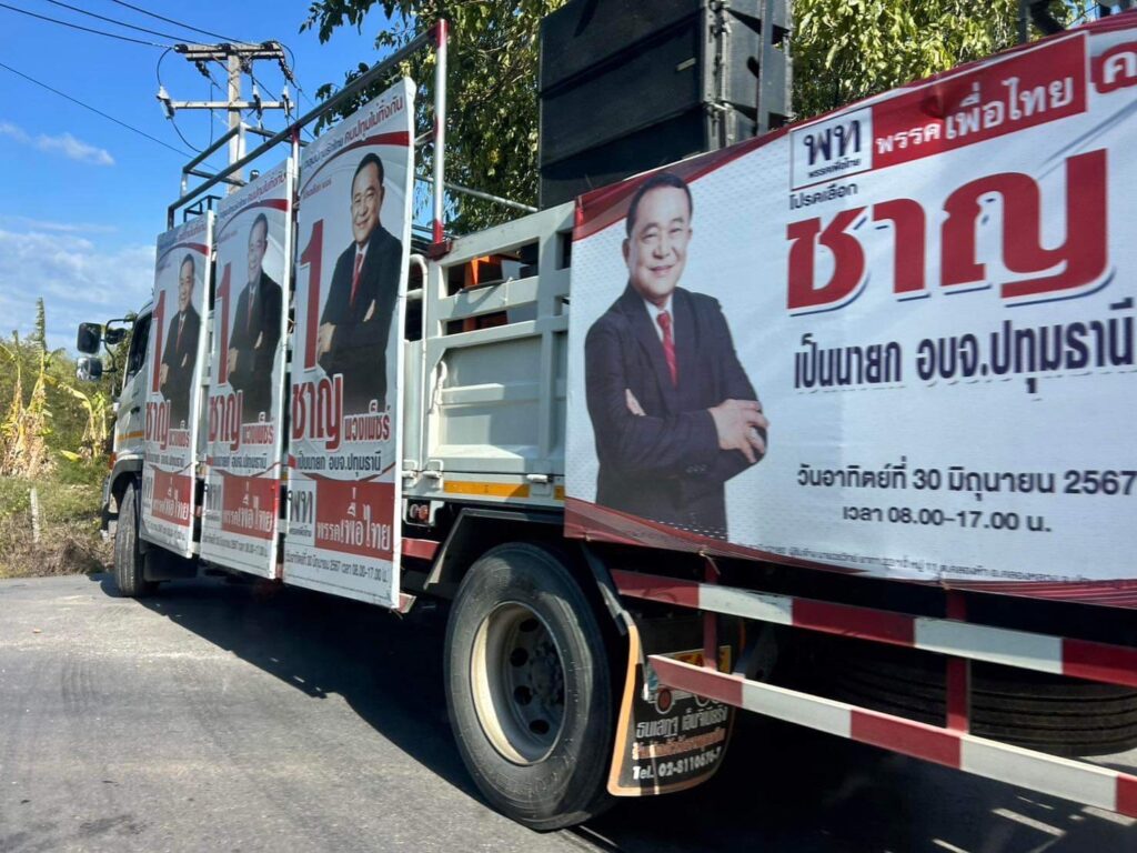 เมื่อวันที่ 27 พ.ค.67 ร.ต.ท.หญิงชนิกานต์ เสถียรไชยกิจ ร้อยเวรสอบสวนสภ.สามโคก ได้รับแจ้งมีอุบัติเหตุรถหกล้อหาเสียงของนายชาญ พวงเพ็ชร์ ผู้สมัครนายก อบจ.จังหวัดปทุมธานี เบอร์ 1 พรรคเพื่อไทย เฉี่ยวชนกับรถจักรยานยนต์นักเรียนซึ่งทำให้นักเรียนได้รับบาดเจ็บ เหตุเกิดที่ถนนสามโคก สายใน ฝั่งตะวันออก ม.2 ต.เชียงรากน้อย อ.สามโคก จ.ปทุมธานี จึงไปที่เกิดเหตุพร้อมด้วยเจ้าหน้าที่มูลนิธิปอเต็กตึ้ง