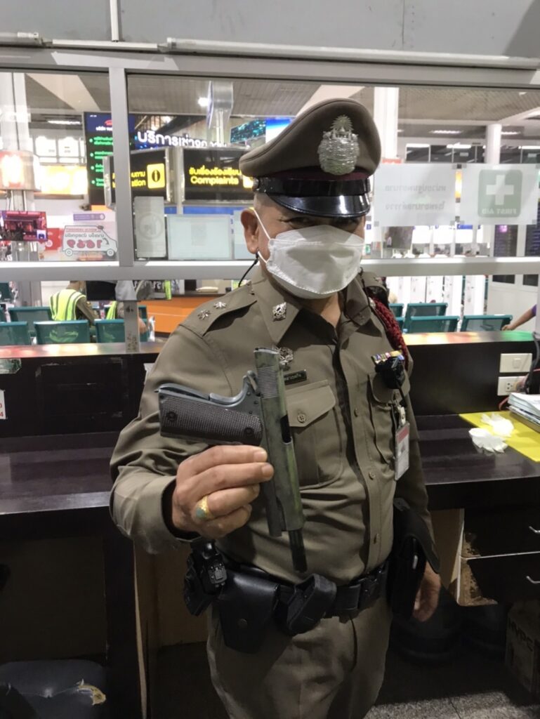 สืบเนื่องมาจากเจ้าหน้าที่ตำรวจชุดจับกุมได้ออกตรวจพื้นที่ บริเวณภายในขนส่งผู้โดยสารกรุงเทพฯ (จตุจักร) พบ นายจีรศักดิ์ พลายสถิตย์ (ทราบชื่อ-นามสกุลจริงภายหลัง) ยืนอยู่บริเวณดังกล่าวท่าทางมีพิรุธและมีเหตุอันควรต้องสงสัยเหมือนกับมีสิ่งของผิดกฎหมายซุกซ่อนอยู่เจ้าหน้าที่ชุดจับกุมจึงแสดงตัวเป็นเจ้าหน้าที่ตำรวจเพื่อขอทำการตรวจสอบ และตรวจค้น จึงได้พาตัวนายจีรศักดิ์ฯ เข้าตรวจเครื่องสแกนโลหะ พบวัตถุต้องสงสัยลักษณะคล้ายอาวุธปืน จึงทำการตรวจค้น ก่อนการตรวจค้นเจ้าหน้าที่ตำรวจได้แสดงความบริสุทธิ์ใจจนเป็นที่พอใจแก่นายจีรศักดิ์ฯ ผลการตรวจค้นของเจ้าหน้าที่ชุดจับกุม พบอาวุธปืนสั้น (ไทยประดิษฐ์) ขนาด .22 มม. จำนวน 1 กระบอก ซุกซ่อนอยู่ในกระเป๋าสะพายสีขาวลายใบไม้ ใบที่นายจีรศักดิ์ฯ ถืออยู่ขณะตรวจค้น เจ้าหน้าที่ตำรวจชุดจับกุมจึงยึดอาวุธปืนสั้น (ไทยประดิษฐ์) ดังกล่าวไว้เป็นของกลาง สอบถามนายจีรศักดิ์ฯ ยอมรับว่าอาวุธปืนของกลางดังกล่าวยืมมาจากเพื่อนชื่อเหลียว (ไม่ทราบชื่อ-นามสกุลจริง) ที่พักอาศัยอยู่บริเวณ จ.สมุทรปราการ เจ้าหน้าที่ตำรวจชุดจับกุมแจ้งข้อกล่าวหาและสิทธิให้ผู้ต้องหาทราบ และทำการจับกุมตัวผู้ต้องหาพร้อมของกลางส่งพนักงานสอบสวน สน.บางซื่อ เพื่อดำเนินคดีตามกฎหมายต่อไป