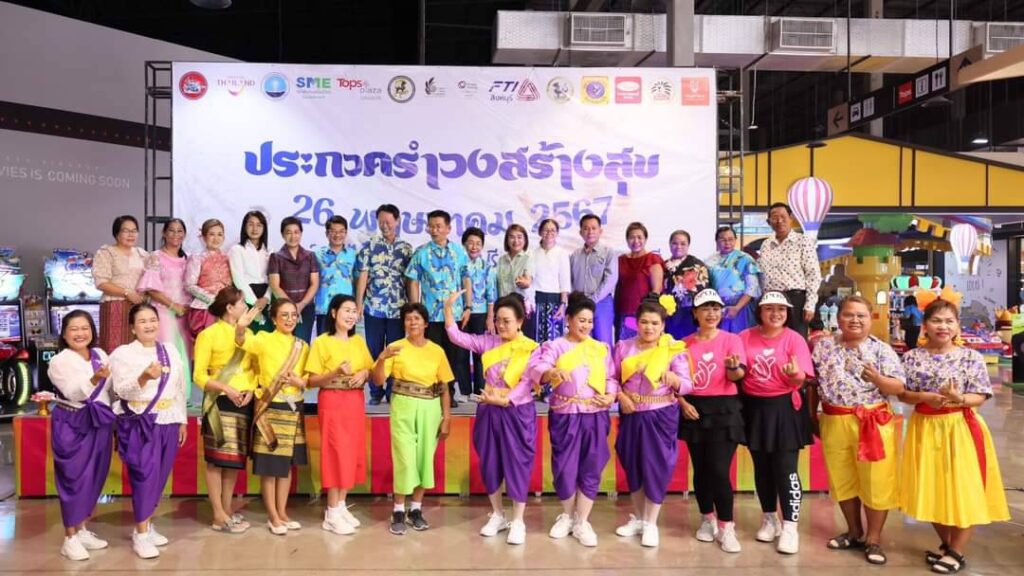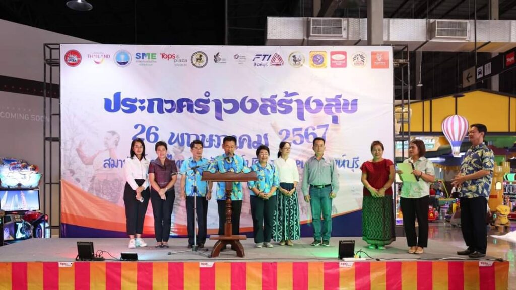 นางอรพรรณ รักถนอม สมาพันธ์ SME ไทยจังหวัดสิงห์บุรี ร่วมกับ สภาอุตสาหกรรมท่องเที่ยวจังหวัดสิงห์บุรี และห้างท๊อป พลาซ่า โดยมีทีมเข้าร่วมการประกวดทั้งสิ้น จำนวน 6 ทีม โดย นายสุเมธ ธีรนิติ ผู้ว่าราชการจังหวัดสิงห์บุรี เป็นประธานในพิธีเปิดกิจกรรมฯ นางวาสนา ธีรนิติ นายกเหล่ากาชาดจังหวัดสิงห์บุรี นายอำเภอหัวหน้าส่วนราชการ ภาครัฐ ภาคเอกชน ร่วมกิจกรรมประกวดรำวงสร้างสุขรำวงประกอบจังหวะ เพื่อเป็นการกระตุ้นเศรษฐกิจจังหวัดสิงห์บุรี ส่งเสริมสืบสานศิลปวัฒนธรรมไทย อนุรักษ์ภูมิปัญญาท้องถิ่น อนุรักษ์ความเป็นไทย ส่งเสริมการท่องเที่ยวจังหวัดสิงห์บุรี โดยจัดให้มีการประกวดรำวงประกอบจังหวะ ประเภททีม ณ ลานกิจกรรม ห้าง tops plaza สิงห์บุรี