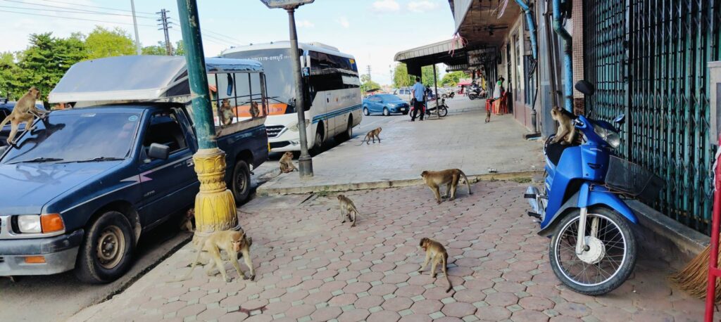 ไปให้ในบริเวณ หน้ามูลนิธิลพบุรีสามัคคีสงเคราะห์ ปรากฏว่าลิงรุมกันแย่งกันกินแบบแบบอร่อยๆไม่ง้อคนดู