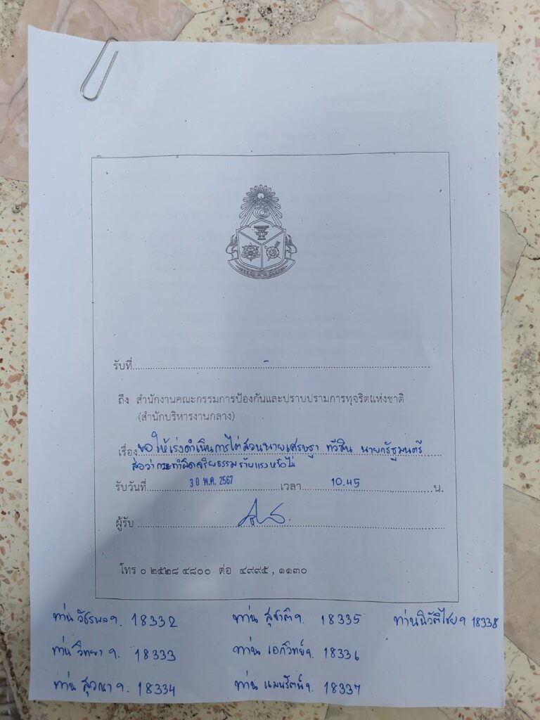 วันที่ 30 พฤษภาคม 2567 เวลา 10.30 น. ที่สำนักงาน ป.ป.ช. นายวัชระ เพชรทอง อดีตสมาชิกสภาผู้แทนราษฎร พรรคประชาธิปัตย์ เดือนทางไปยืนหนังสือถึง นายนิวัติไชย เกษมมงคล เลขาธิการคณะกรรมการ ป.ป.ช. เพื่อขอให้สำนักงาน ป.ป.ช. ดำเนินการไต่สวน นายเศรษฐา ทวีสิน นายกรัฐมนตรี ส่อว่ากระทำผิดจริยธรรมร้ายแรงหรือไม่ จากกรณีเสนอชื่อนายพิชิต ชื่นบาน ให้ดำรงตำแหน่งเป็นรัฐมนตรีประจำสำนักนายกรัฐมนตรี โดยนำชื่อขึ้นทูลเกล้าฯ ถวายเพื่อทรงพระกรุณาโปรดเกล้าฯ แต่งตั้งและเว็บไซต์ราชกิจจานุเบกษาได้เผยแพร่ประกาศลงวันที่ ๒๘ เมษายน ๒๕๖๗ แต่งตั้ง นายพิชิต ชื่นบาน เป็นรัฐมนตรีประจำสำนักนายกรัฐมนตรี ตามที่เคยเสนอข่าวไปก่อนหน้านี้นั้น