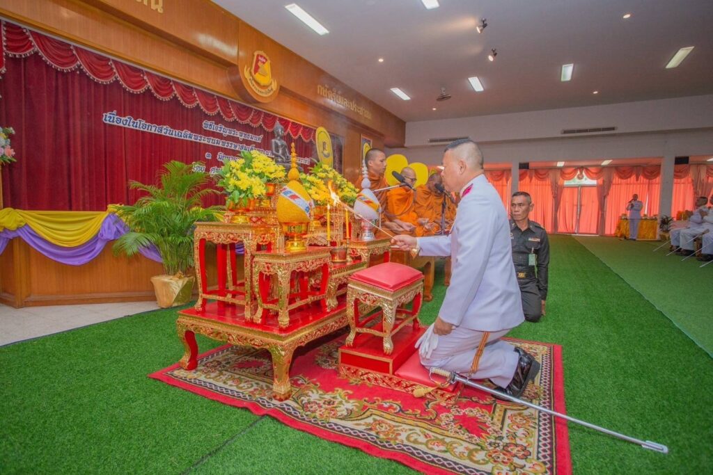 ที่ สโมสรนายทหาร ศูนย์การทหารปืนใหญ่ ค่ายภูมิพลฯ จังหวัดลพบุรี พลตรี พิศิษฐ ปัญญานะ ผู้บัญชาการศูนย์การทหารปืนใหญ่ เป็นประธาน นำข้าราชการกำลังพล ตลอดจน สมาชิกสมาคมแม่บ้านทหารบก สาขาศูนย์การทหารปืนใหญ่ พร้อมด้วยคณะ ครู นักเรียน โรงเรียนกองทัพบกอุปถัมภ์สองเหล่าสร้าง ร่วมประกอบพิธีทำบุญตักบาตรข้าวสารอาหารแห้งแด่พระสงฆ์ จำนวน 10 รูป พร้อมทั้งร่วมประกอบพิธีสวดเจริญพระพุทธมนต์ เพื่อเฉลิมพระเกียรติ และถวายเป็นพระราชกุศลฯ แด่ สมเด็จพระนางเจ้าสุทิดา พัชรสุธาพิมลลักษณ พระบรมราชินี เนื่องในโอกาสวันเฉลิมพระชนมพรรษา ครบ 46 พรรษา ในวันที่ 3 มิถุนายน 2567
