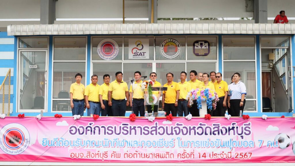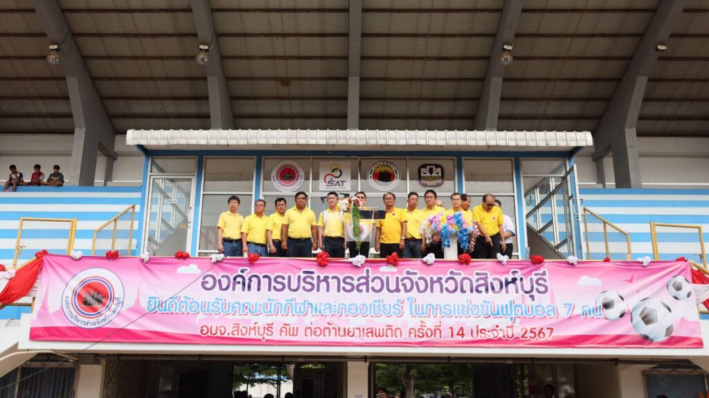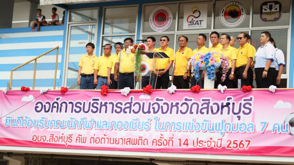โครงการแข่งขันฟุตบอล ๗ คน อบจ.สิงห์บุรี คัพ ต่อต้านยาเสพติด ครั้งที่ ๑๔ ประจำปี ๒๕๖๗ ณ สนามกีฬาองค์การบริหารส่วนจังหวัดสิงห์บุรี อำเภอเมืองสิงห์บุรี จังหวัดสิงห์บุรี