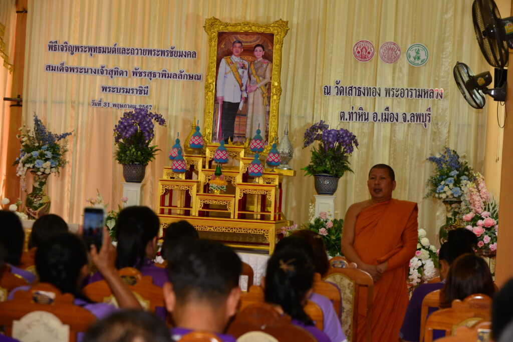 นายจำเริญ สละชีพ นายกเทศมนตรีเมืองลพบุรี พร้อมด้วย นายสมชัย อินปุระ รองนายกเทศมนตรีเมืองลพบุรี นายอนุสรณ์ อัศวสงคราม รองนายกเทศมนตรีเมืองลพบุรี นายสันธนะ บัวชาติ รองนายกเทศมนตรีเมืองลพบุรี คณะสมาชิกสภาเทศบาลเมืองลพบุรี พนักงานเทศบาล ลูกจ้าง ประชาชน จิตอาสา เข้าร่วมในพิธีเจริญพระพุทธมนต์ ปฏิบัติธรรม เจริญสมาธิภาวนา ที่วัดเสาธงทอง (พระอารามหลวง) โดยมี พระครูสิริจริยาภรณ์ เจ้าอาวาสวัดเสาธงทอง เจ้าคณะอำเภอเมืองลพบุรี และคณะสงฆ์ เจริญพระพุทธมนต์ ปฏิบัติธรรม เจริญสมาธิภาวนา เพื่อเฉลิมพระเกียรติ และถวายเป็นพระราชกุศลแด่สมเด็จพระนางเจ้าฯ พระบรมราชินี