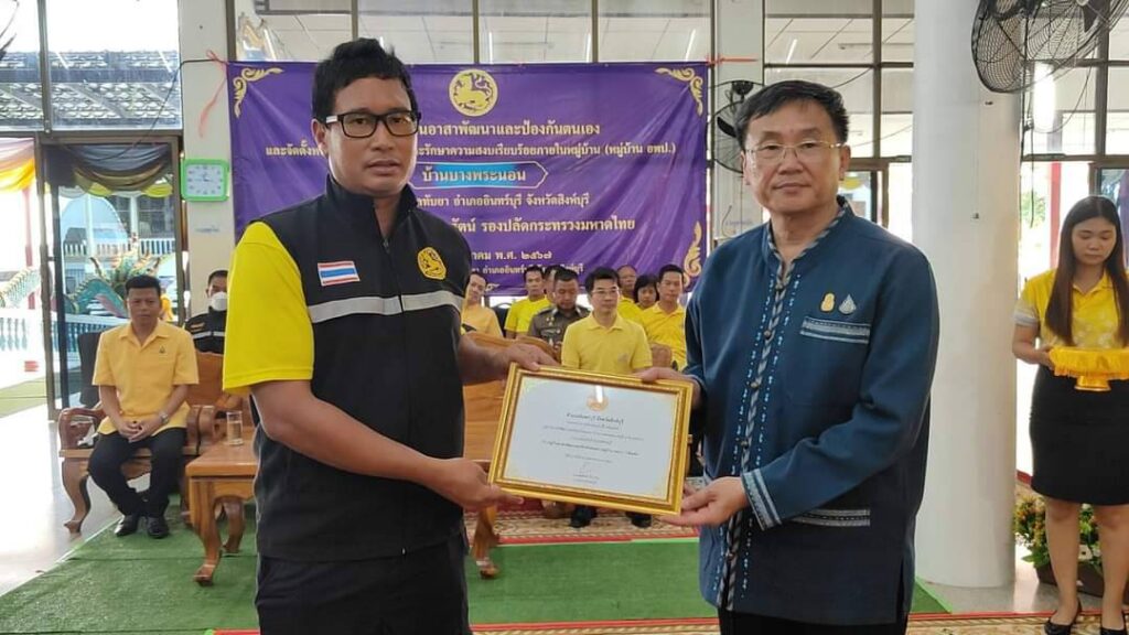 วันที่ 31 พฤษภาคม 2567 นายชำนาญวิทย์ เตรัตน์ รองปลัดกระทรวงมหาดไทย เป็นประธานในพิธีเปิดหมู่บ้านอาสาพัฒนาและป้องกันตนเองและจัดตั้งหน่วยกำลังคุ้มครองและรักษาความสงบเรียบร้อยภายในหมู่บ้าน อพป.บ้านบางพระนอน หมู่ที่ 1 ตำบลทับยา อำเภออินทร์บุรี จังหวัดสิงห์บุรี โดยมีนายสมศักดิ์ เกี้ยวเกิด นายอำเภออินทร์บุรี ผู้ตรวจราชการกรมส่งเสริมปกครองท้องถิ่น ผู้กำกับการสถานีตำรวจภูธรสิงห์บุรี กอ.รมน.สิงห์บุรี นายกเทศมนตรีตำบลทับยา หัวหน้าส่วนประจำอำเภอ