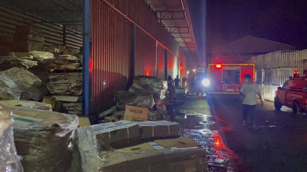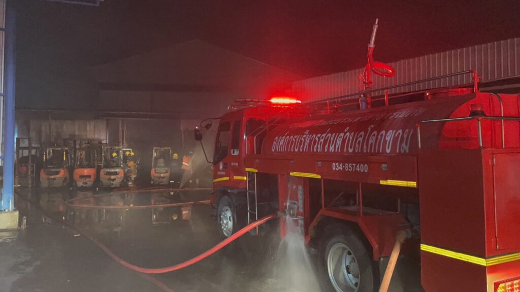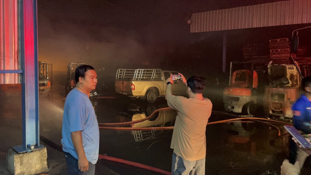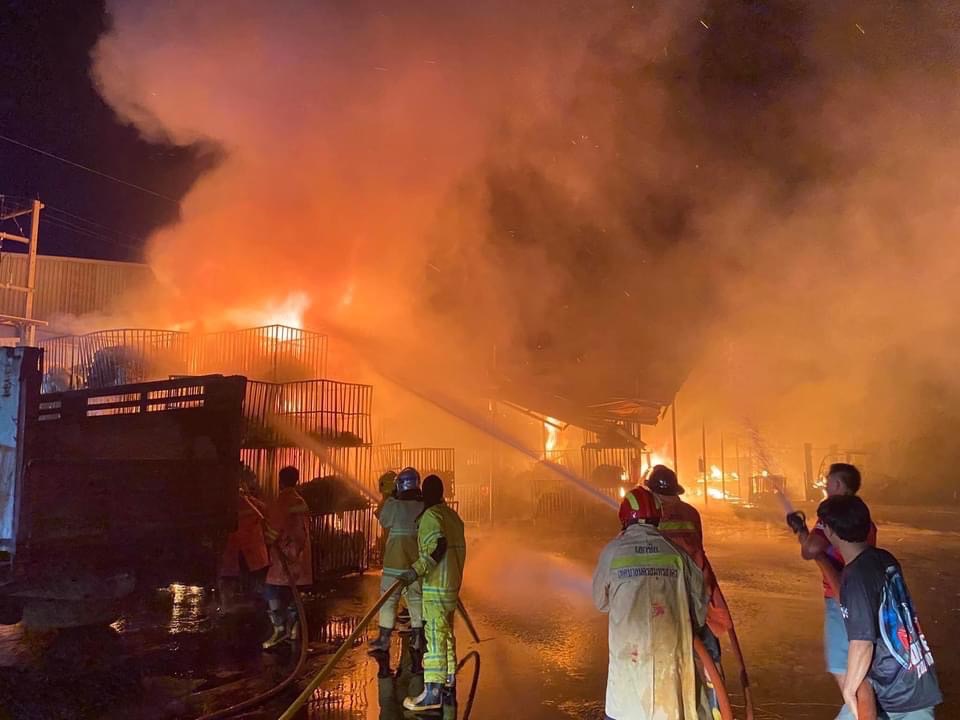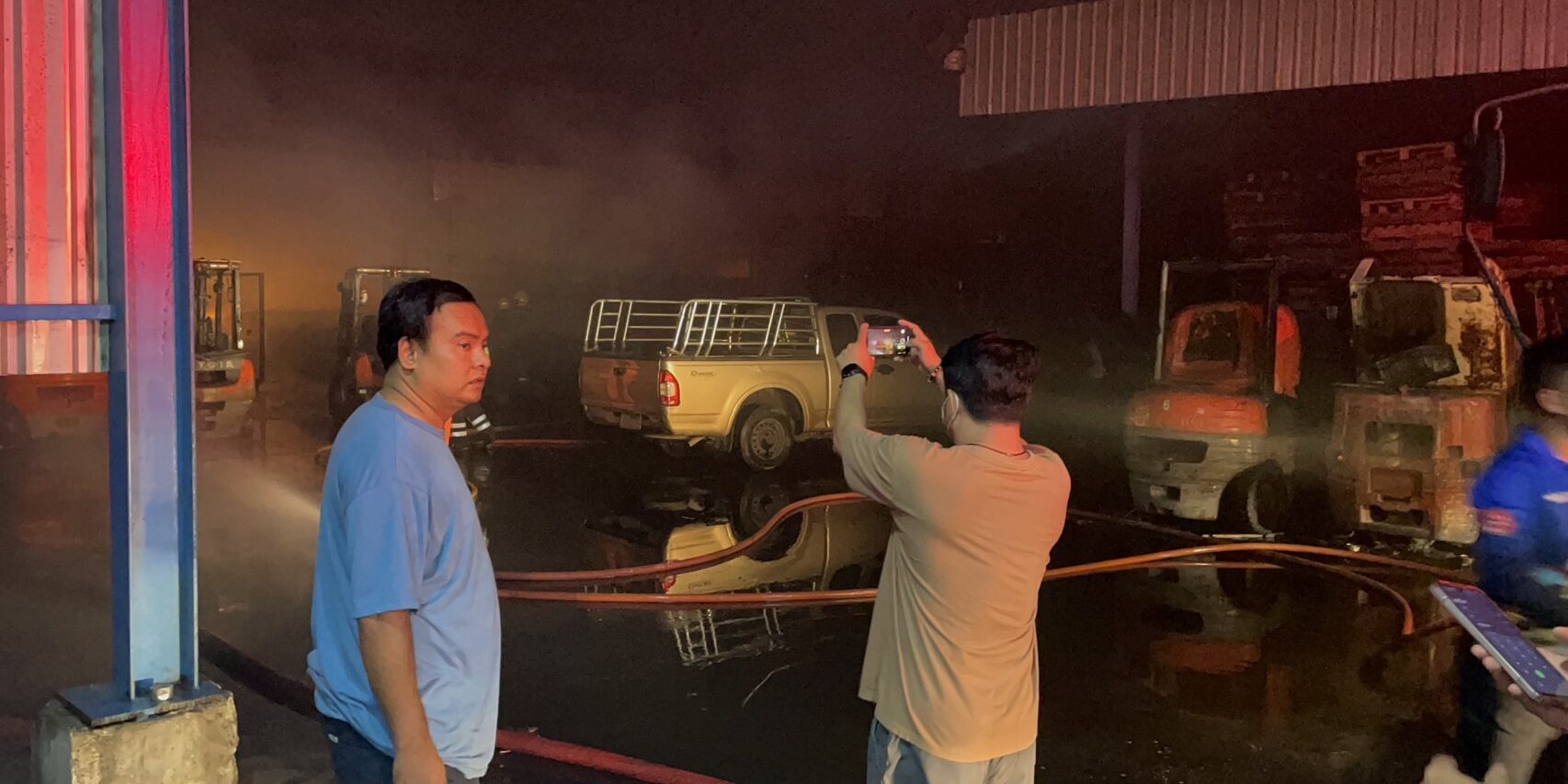 กระป๋องและอาหารทะเลบรรจุกระป๋อง ในพื้นที่ ม.3 ถ.กิจมณี ต.บางหญ้าแพรก อ.เมือง จ.สมุทรสาคร โดยจุดที่เกิดเพลิงไหม้เป็นบริเวณภายในอาคารเก็บวัสดุประเภทเศษกล่องกระดาษ วัสดุเหลือใช้ และถังเก็บนำ้มันเครื่อง