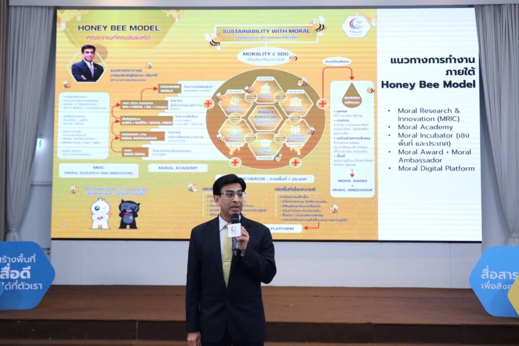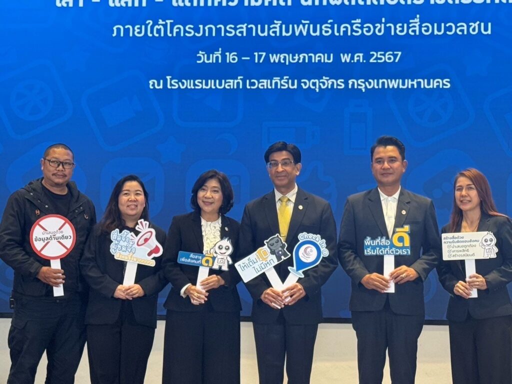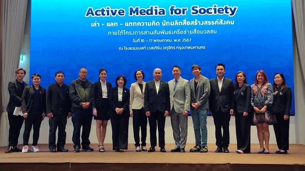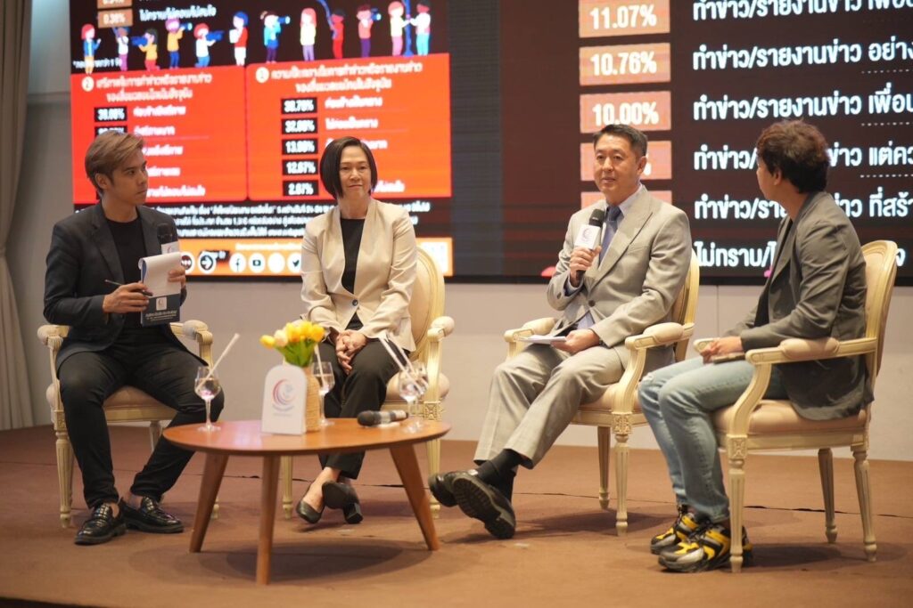 ศูนย์คุณธรรม เปิดพื้นที่ นักสื่อสารสร้างสรรค์สังคมคุณธรรม ผ่านกิจกรรม Active Media for Society “เล่า-แลก-แตกความคิด” นำโดย รศ. นพ.สุริยเดว ทรีปาตี ผู้อำนวยการศูนย์คุณธรรม(องค์การมหาชน) ผู้ทรงคุณวุฒิ และเจ้าหน้าที่ศูนย์คุณธรรม ชวนนักสื่อสารสร้างสรรค์สังคมคุณธรรมผ่านกิจกรรม “Active Media for Society เล่า-แลก-แตกความคิด” ส่งเสริมและขับเคลื่อนสังคมแห่งการเรียนรู้ปลอดภัยพร้อมสร้างพื้นที่สื่อดีเพื่อสังคมดี โดยได้รับเกียรติจากคุณวิบูลย์ ลีรัตนขจร ประธานเจ้าหน้าที่บริหาร กลุ่มบริษัท เซิร์ช คุณชุตินธรา วัฒนกุล บรรณาธิการบริหารด้านข่าวออนไลน์ สถานีโทรทัศน์ไทยพีบีเอส และคุณพลสัน นกน่วม เจ้าของช่อง “เล่าเรื่องแบรนด์กับ แซม พลสัน” ในการเสวนาพิเศษภายใต้หัวข้อ“ความรับผิดชอบต่อสังคมของสื่อในจักรวาลข่าวสารไร้พรมแดน” โดยมีผู้เข้าร่วม 33 คน ณ ห้อง Barn โรงแรมเบสท์ เวสเทิร์น จตุจักร กรุงเทพมหานคร . กิจกรรมในครั้งนี้เป็นจุดเริ่มต้นการกระตุ้นจิตสำนึกและตระหนักถึงการสร้างสรรค์สังคมคุณธรรม พร้อมส่งเสริมค่านิยมเชิงบวกที่จะนำไปสู่การเปลี่ยนแปลงเชิงพฤติกรรมของผู้รับสารในการปรับเปลี่ยนทัศนคติ และค่านิยมเชิงพฤติกรรมต่อมิติคุณธรรมด้านต่าง ๆ ให้ผู้คนมีจิตสำนึก รับผิดชอบต่อส่วนรวม และเป็นส่วนสำคัญที่จะนำไปสู่สังคมแห่งสันติสุขต่อไป . . ภาพ/ข่าว : กลุ่มงานสื่อสารและรณรงค์ทางสังคม #สื่อตื่นตัวสังคมตื่นรู้ #ActiveMediaforSociety #ศูนย์คุณธรรม #ทำดีไม่ต้องเดี๋ยว #คนดีมีพื้นที่ยืน #ความดีมีพื้นที่ในสังคม #กระทรวงวัฒนธรรม