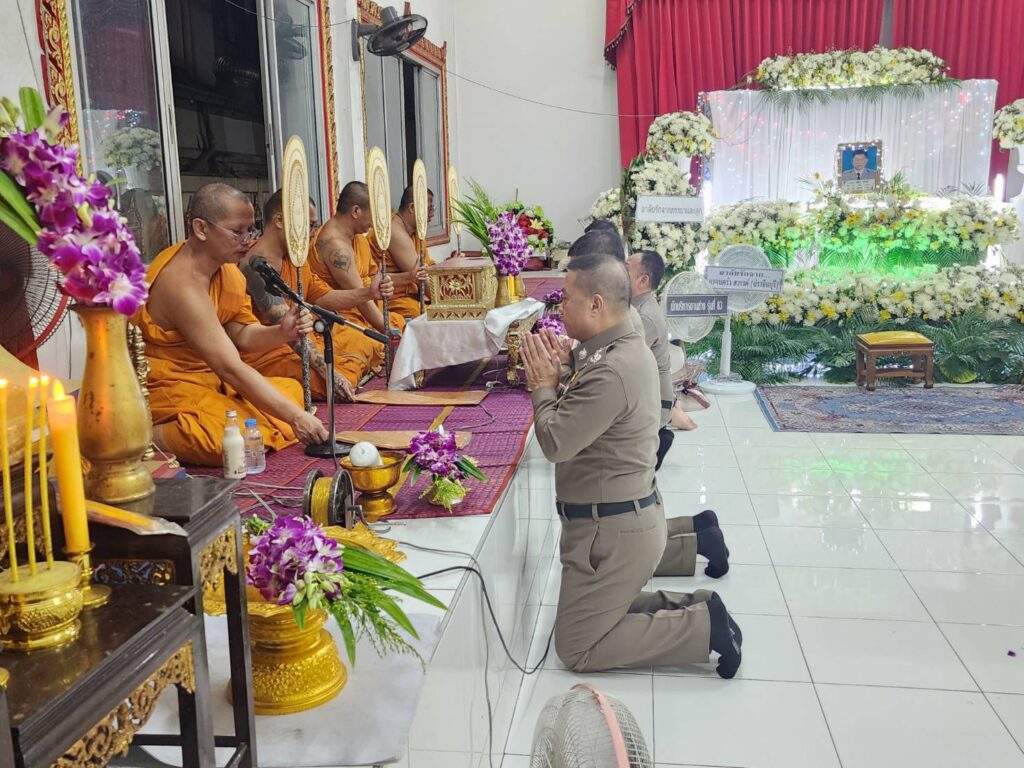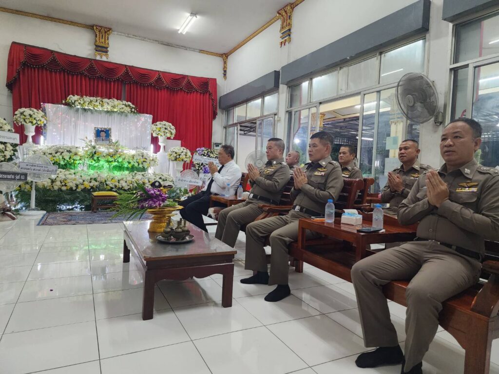 โดยมี พ.ต.อ.ศราวุธ สวัสดิชัย รอง ผบก.ภ.จ.ปทุมธานี,พ.ต.อ.นิพนธ์ ป้อมสนาม ผกก.(สอบสวน) กตค.บก.กค.ภ.2,นายวิโรจน์ อำนวยยนต์วารี อดีตประธานกต.ตร.สภ.บางละมุง และข้าราชการตำรวจ เข้าร่วมสวดพระอภิธรรมในครั้งนี้