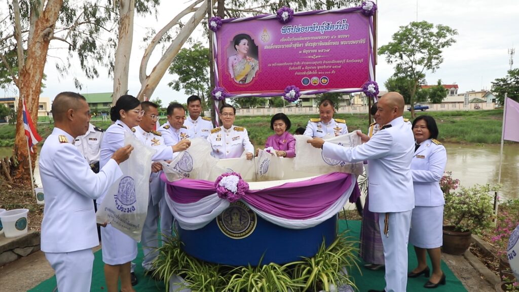 วันที่ 3 มิถุนายน 2567 เวลา 06.30 น. ที่ หอประชุมอำเภอเมืองลพบุรี นายอำพล อังคภากรณ์กุล ผู้ว่าราชการจังหวัดลพบุรี นำข้าราชการตุลาการ ทหาร ตำรวจ ข้าราชการพลเรือนและพสกนิกรทุกหมู่เหล่า เข้าร่วมพิธีทำบุญตักบาตรพระสงฆ์ จำนวน 47 รูป และเจริญพระพุทธมนต์ ถวายพระราชกุศล เฉลิมพระเกียรติสมเด็จพระนางเจ้าฯพระบรมราชินี เนื่องในโอกาสวันเฉลิมพระชนมพรรษา 3 มิถุนายน 2566 จากนั้นทำพิธีมอบทุนการศึกษาจำนวน 52 ทุน ให้แก่เด็กยากไร้ และในเวลา 09.00 น. ผู้ว่าราชการจังหวัดฯ ได้นำพสกนิกรทุกหมู่เหล่า ทำพิธีปล่อยพันธุ์สัตว์น้ำ จำนวน 199,999 ตัว ณ ท่าน้ำบริเวณริมคลองชัยนาท-ป่าสัก (สะพาน 7) อำเภอเมืองลพบุรี จังหวัดลพบุรี เพื่อถวายเป็นพระราช กุศลฯ