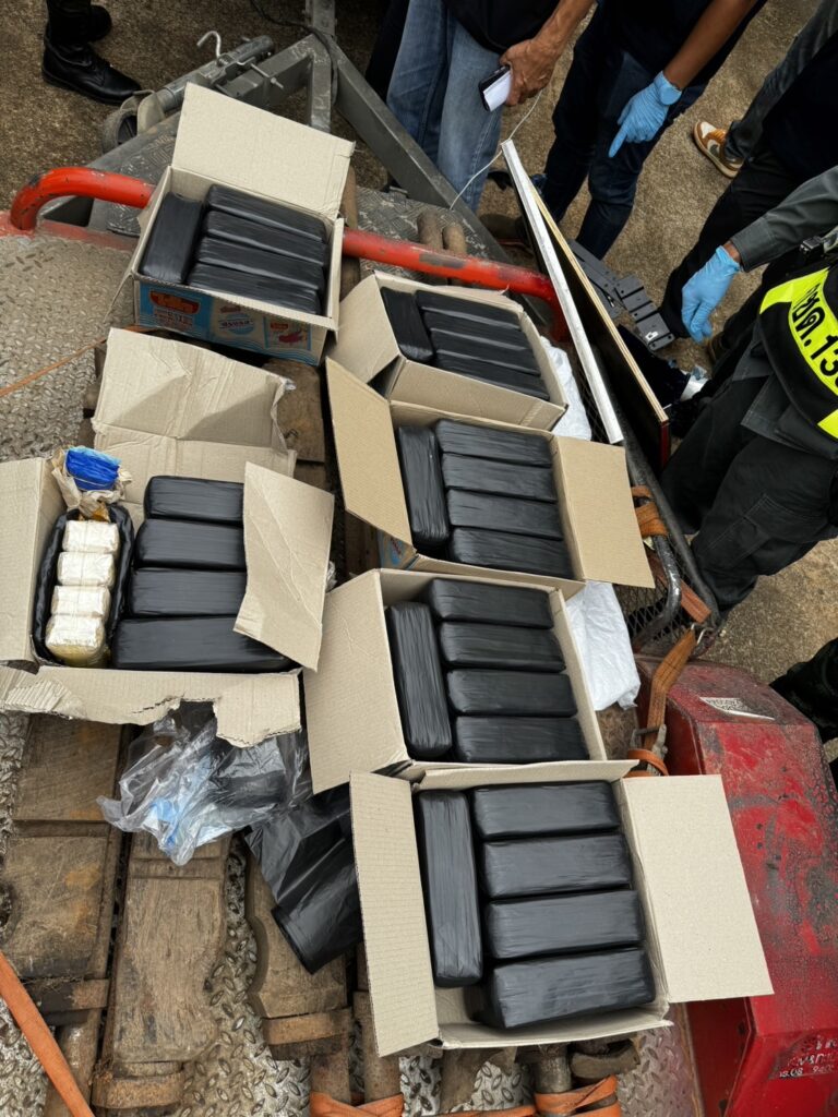 วันนี้ (4 มิ.ย.) พล.ต.ท.นัยวัฒน์ ผะเดิมชิต ผบช.ภ.7 ได้รับรายงานจาก พล.ต.ต.นครินทร์ สุคนธวิท ผบก.ภ.จว.กาญจนบุรี กรณีเจ้าหน้าที่ด่านความมั่นคง ประกอบด้วย พ.ต.อ.มนตรี แตงโต ผกก.สภ.ทองผาภูมิ และ พ.ต.อ.ลิขิต กล้วยดำรง ผกก.1 บก.ปส.4 บช.ปส.สนธิกำลังกับ ตชด.13 เจ้าหน้าที่ทหาร และฝ่ายปกครอง สามารถจับกุมตัว นายปิยะคณิศร ปิติคุณพัฒนาภรณ์ อายุ 42 ปี ชาว จ.กาญจนบุรี ได้พร้อมของกลาง ยาบ้า ซุกซ่อนในลังบะหมี่สำเร็จรูป จำนวน 6 ลัง รวม 300,000 เม็ด และ รถยนต์ ยี่ห้อ TOYOTA รุ่น ฟอร์จูนเนอร์ สีขาว ทะเบียน กย 1517 กาญจนบุรี โดยจับกุมได้ที่ด่านความมั่นคงบริเวณสามแยก ทองผาภูมิ ตำบลท่าขนุน อำเภอทองผาภูมิ จังหวัดกาญจนบุรี เมื่อช่วงสายวันที่ 3 มิ.ย.ที่ผ่านมา