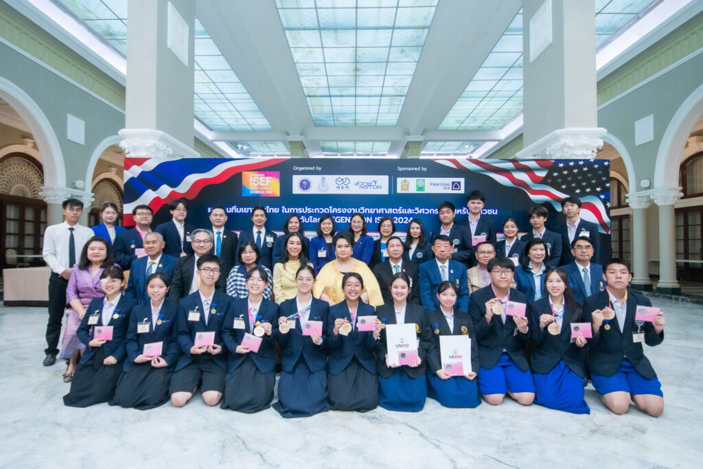 เมื่อวันที่ 4 มิถุนายน 2567 ที่ตึกสันติไมตรี ทำเนียบรัฐบาล: ก่อนการประชุมคณะรัฐมนตรี (ครม.) น.ส.ศุภมาส อิศรภักดี รัฐมนตรีว่าการกระทรวงการอุดมศึกษา วิทยาศาสตร์ วิจัย และนวัตกรรม (อว.) ให้การต้อนรับคณะทีมเยาวชนไทยที่เข้าร่วมการแข่งขันโครงงานวิทยาศาสตร์และวิศวกรรมศาสตร์สำหรับเยาวชน ระดับโลก REGENERON ISEF 2024 และสามารถคว้ารางวัลสร้างความภาคภูมิใจให้ประเทศไทยได้สำเร็จ ในโอกาสเข้าพบพร้อมร่วมแสดงความยินดีและมอบโอวาทให้แก่เยาวชน โดยมี น.ส.สุชาดา แทนทรัพย์ เลขานุการ รมว.อว.,น.ส.สุณีย์ เลิศเพียรธรรม หัวหน้าผู้ตรวจราชการกระทรวง อว.,ศ.ดร.ธณัฏฐ์คุณ มงคลอัศวรัตน์ นายกสมาคมวิทยาศาสตร์แห่งประเทศไทยในพระบรมราชูปถัมภ์,ผศ.ดร.รวิน ระวิวงศ์ ผู้อำนวยการองค์การพิพิธภัณฑ์วิทยาศาสตร์แห่งชาติ (อพวช.),ศ.ดร.ชูกิจ ลิมปิจำนงค์ ผู้อำนวยการสำนักงานพัฒนาวิทยาศาสตร์และเทคโนโลยีแห่งชาติ (สวทช.),นายสมปรารถนา สุขทวี รองผู้อำนวยการ สำนักงานการวิจัยแห่งชาติ และ น.ส.อารยา ภู่พานิช รองผู้จัดการใหญ่ ผู้บริหารสายงานกิจกรรมเพื่อสังคม ธนาคารไทยพาณิชย์ จำกัด (มหาชน) เข้าร่วมด้วย