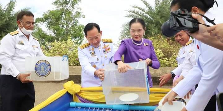 จากนั้น ได้มีพิธีปล่อยพันธุ์สัตว์น้ำ จำนวน 200,000 ตัว (ปลาสวาย, ปลาสร้อยขาว, ปลาชะโอน) ณ ท่าน้ำสวนเทพปทุม อำเภอเมืองปทุมธานี เพื่อถวายพระราชกุศลและน้อมสำนึกในพระมหากรุณาธิคุณของสมเด็จพระนางเจ้า ฯ พระบรมราชินี และเป็นการสืบทอดพระพุทธศาสนาให้เจริญรุ่งเรืองต่อไป