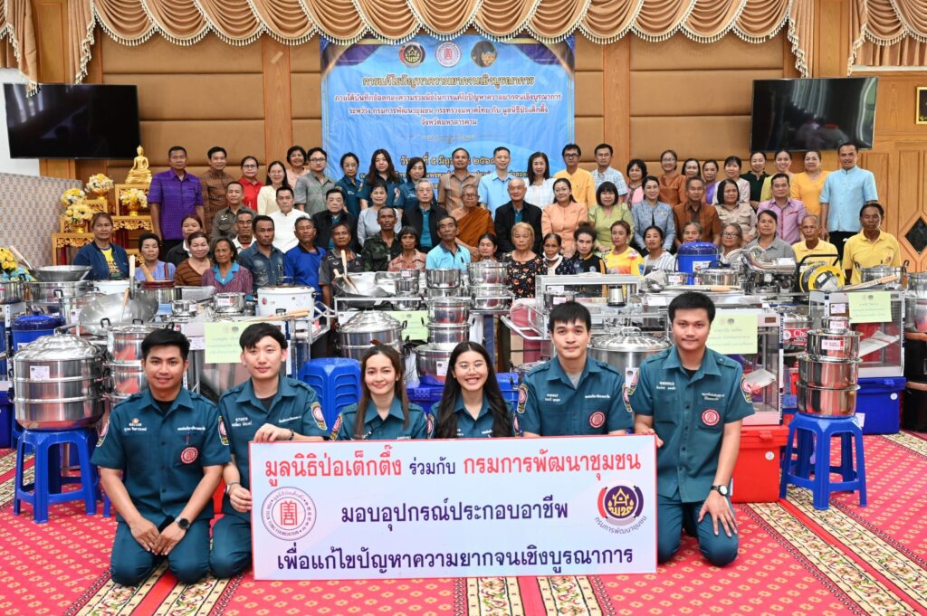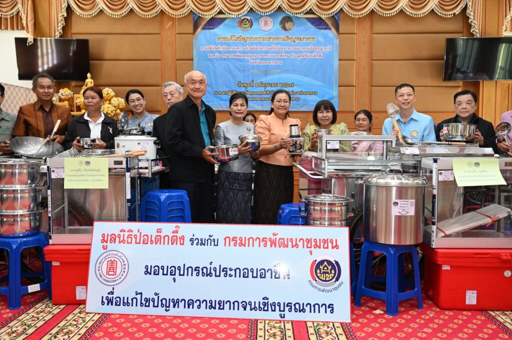 โครงการแก้ไขปัญหาความยากจนเชิงบูรณาการ มูลนิธิป่อเต็กตึ๊ง ได้สนับสนุนอุปกรณ์ประกอบอาชีพ ช่วยเหลือครัวเรือนยากจน ตามบันทึกข้อตกลงความร่วมมือแก้ไขปัญหาความยากจน ระหว่างกรมการพัฒนาชุมชนและมูลนิธิป่อเต็กตึ๊ง ซึ่งมูลนิธิฯ ได้จัดงบประมาณดำเนินการเพื่อจัดหาวัสดุอุปกรณ์การประกอบอาชีพมอบให้แก่ครัวเรือนยากจน ให้สามารถประกอบอาชีพเลี้ยงตนเองและครอบครัว โดยในกลุ่มเป้าหมายแรกดำเนินการในพื้นที่ภาคกลาง 17 จังหวัด รวม 98 ครัวเรือน ต่อมา ได้ดำเนินการในพื้นที่จังหวัดทางภาคเหนือ 17 จังหวัด รวม 230 ครัวเรือน ซึ่งได้ดำเนินการเป็นที่เรียบร้อยแล้ว และในขณะได้พิจารณาพื้นที่ภาคตะวันออกเฉียงเหนือ รวม 20 จังหวัด ประกอบด้วย จังหวัดบุรีรัมย์ สุรินทร์ กาฬสินธุ์ ชัยภูมิ นครราชสีมา อุดรธานี มุกดาหาร หนองบัวลำภู บึงกาฬ ยโสธร ศรีสะเกษ มหาสารคาม ขอนแก่น อุบลราชธานี ร้อยเอ็ด อำนาจเจริญ สกลนคร เลย หนองคาย และ นครพนม ซึ่งปัจจุบันทางมูลนิธิป่อเต็กตึ๊งได้ลงพื้นที่มอบไปแล้วรวมทั้งสิ้น 11 จังหวัด