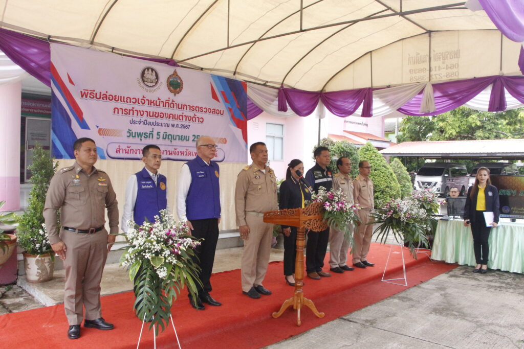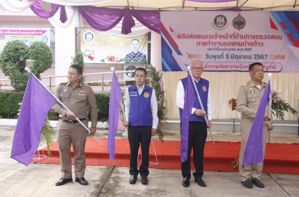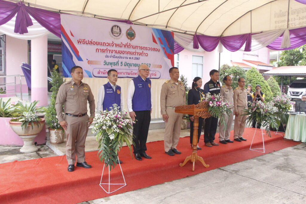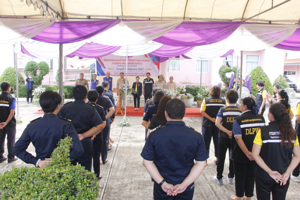 วันที่ 5 มิถุนายน 2567 เวลา 08.00 น. ที่บริเวณหน้าอาคารสำนักงานจัดหางานจังหวัดเพชรบูรณ์ อำเภอเมืองเพชรบูรณ์ จังหวัดเพชรบูรณ์ นายจิรวัตร์ มณีโชติ รองผู้ว่าราชการจังหวัดเพชรบูรณ์ เป็นประธานในพิธี รับมอบนโยบบายและปล่อยแถวเจ้าหน้าที่ด้านการตรวจสอบการทำงานของคนต่างด้าว ประจำปีงบประมาณ 2567 โดยมี นายโกวิทย์ ศรีแห่งโคตร จัดหางานจังหวัดเพชรบูรณ์ กล่าวรายงาน พร้อมด้วย เจ้าหน้าที่หน่วยงานในสังกัดกระทรวงแรงงาน ตรวจคนเข้าเมืองจังหวัด กอ.รมน.จังหวัด ที่ทำการปกครองจังหวัด ตำรวจภูธรจังหวัด และเจ้าหน้าที่สำนักงานพัฒนาสังคมและความมั่นคงของมนุษย์จังหวัด เข้าร่วม