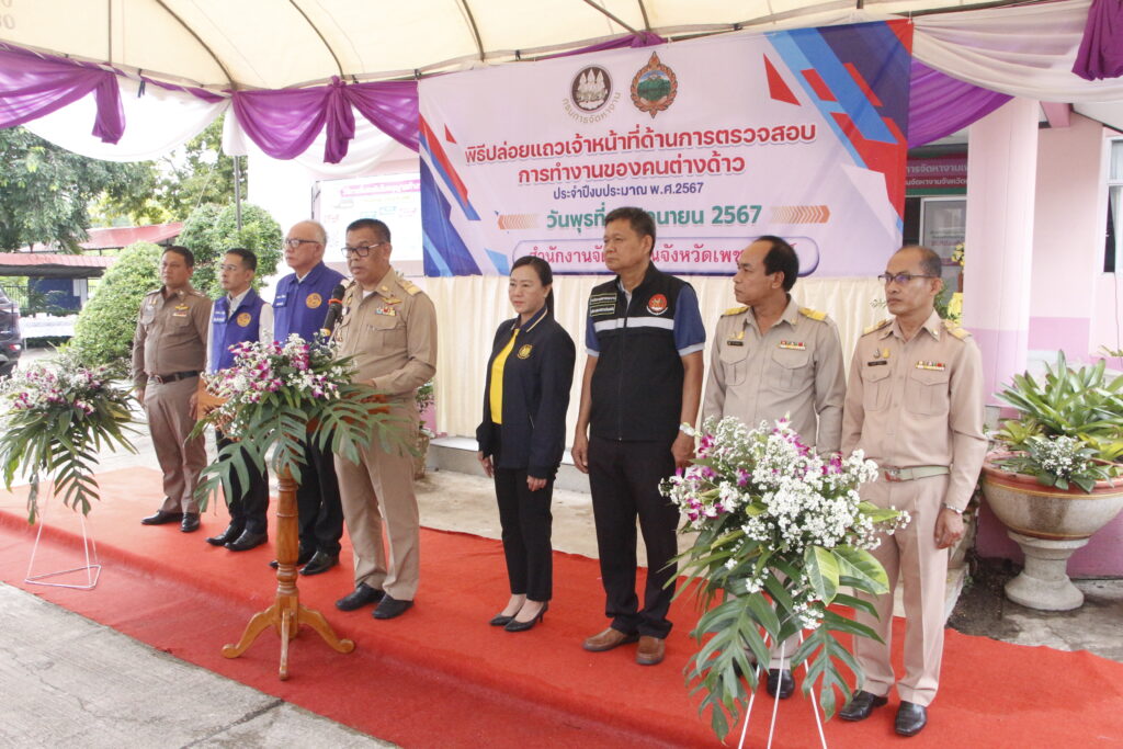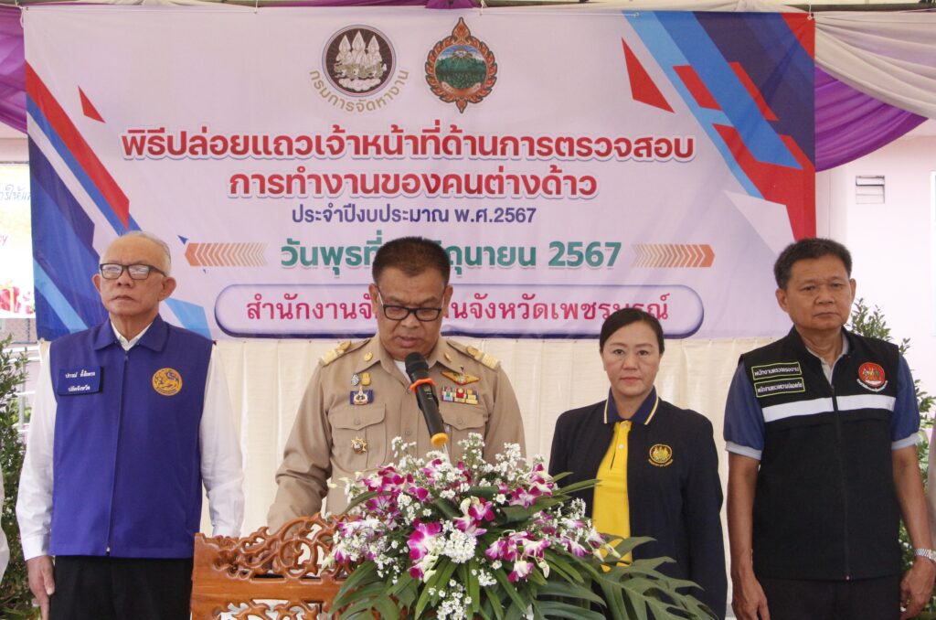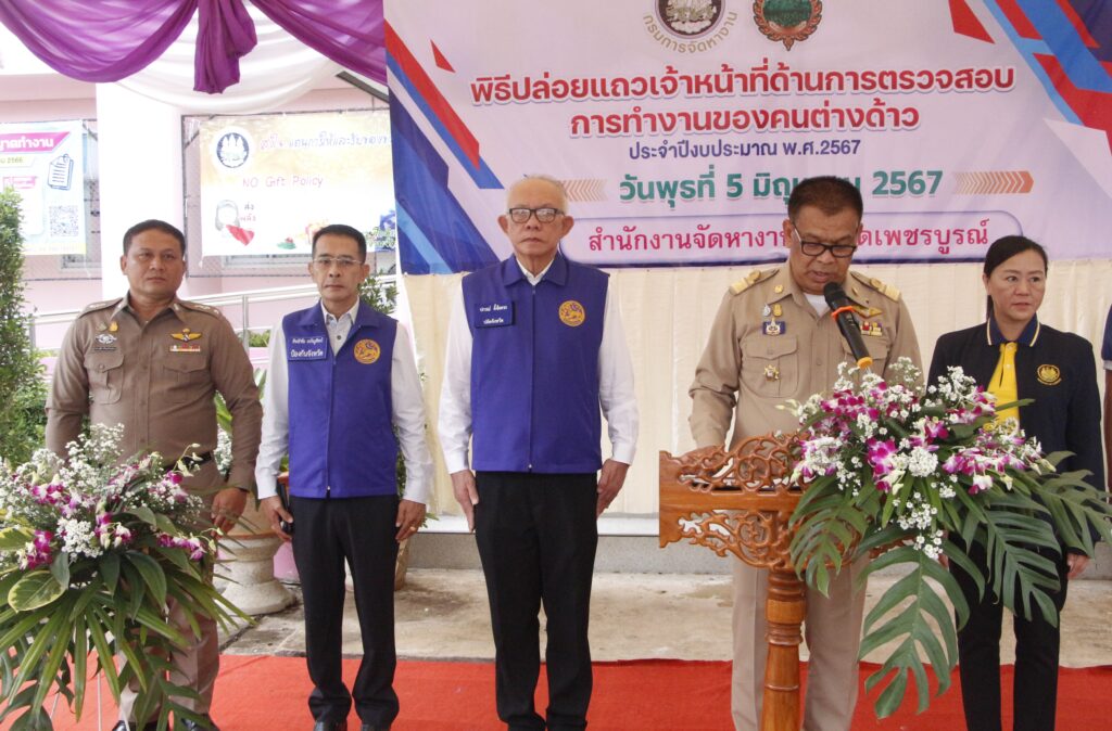 จัดหางานจังหวัดเพชรบูรณ์ กล่าวต่อว่า จังหวัดเพชรบูรณ์ มีแรงงานต่างด้าว จำนวน 13,274 คน เป็นแรงงานต่างด้าว กลุ่มมติคณะรัฐมนตรีวันที่ 3 ตุลาคม 2566 จำนวน 2,504 คน ที่ต้องดำเนินการตามขั้นตอนข้างต้น แม้ว่าจังหวัดเพชรบูรณ์ไม่มีแนวชายแดนติดกับประเทศเพื่อนบ้าน แต่พบมีแรงงานจากประเทศเพื่อนบ้านบางส่วนลักลอบเข้ามาในประเทศไทยโดยผ่านช่องทางธรรมชาติ และลักลอบทำงานโดยผิดกฎหมาย สำนักงานจัดหางานจังหวัดเพชรบูรณ์จึงบูรณาการร่วมกับหน่วยงานด้านความมั่นคงในพื้นที่ ประกอบด้วยหน่วยงานในสังกัดกระทรวงแรงงาน ตรวจคนเข้าเมืองจังหวัด กอ.รมน.จังหวัด ที่ทำการปกครองจังหวัด ตำรวจภูธรจังหวัด สำนักงานพัฒนาสังคมและความมั่นคงของมนุษย์จังหวัด ปล่อยแถวเจ้าหน้าที่ผู้ปฏิบัติงานด้านการตรวจสอบการทำงานของคนต่างด้าว พร้อมกับ ส่วนกลางซึ่งมี นายพิพัฒน์ รัชกิจประการ รัฐมนตรีว่าการกระทรวงแรงงาน เป็นผู้มอบนโยบายและปล่อยแถว