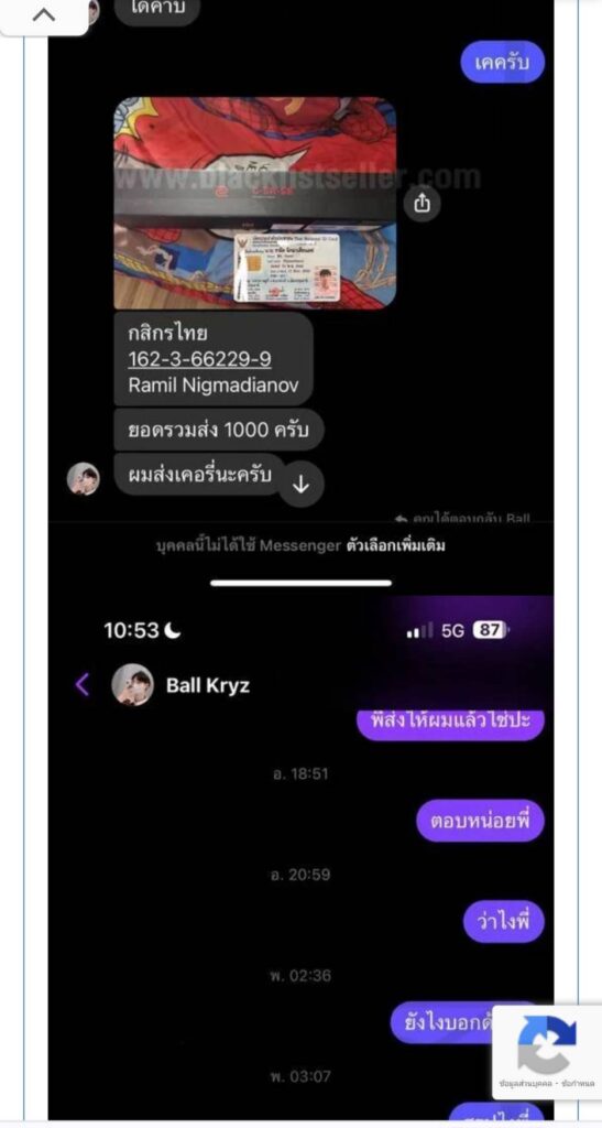 ต่อมาผู้เสียหายได้เดินทางเข้าแจ้งความกับ พ.ต.ท.วิษณุ วงษ์เนตร รอง ผกก.(หัวหน้างานสอบสวน) สน.ภาษีเจริญ ให้ช่วยดำเนินการติดตามเงินที่โดนหลอกไป จนสามารถได้เงินคืนมาจำนวน 49,210 บาท แม้จะยังเทียบไม่ได้กับความเสียหาย ทั้งหมดที่สูญเสียไป แต่ผู้เสียหายค่อนข้างพอใจ ซึ่งจากการตรวจสอบประวัติเจ้าของบัญชีธนาคาร กสิกรไทย เลขที่ 1623662299 ชื่อบัญชี Mr.Ramil Nigmadianov หรือ นายรามิล นิกมาเดียนอฟ นั้นพบว่า ถูกขึ้นบัญชีดำในโลกออนไลน์ ในฐานะมิจฉาชีพที่หลอกขายของ ให้เหยื่อโอนเงินเข้าไปจำนวนมาก โดยพฤติกรรมคือ คนร้ายจะใช้บัญชีเฟซบุ๊กปลอม อาทิ การใช้บัญชีชื่อ ‘Ball Kryz’ เข้าไปทักทายเหยื่อที่กำลังโพสต์หาสินค้าในโลกออนไลน์ ก่อนตกลงราคา ส่งรูปบัตรประชาชนซึ่งแนวทางการสืบสวนเชื่อว่าน่าจะเป็นบัตรประชาชนปลอมให้ดู พอเหยื่อตายใจโอนเงินเข้าบัญชีดังกล่าวไป ผ่านแอพฯ ธนาคารเป็นที่เรียบร้อยก็ไม่สามารถติดต่อได้อีกเลย