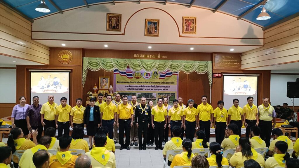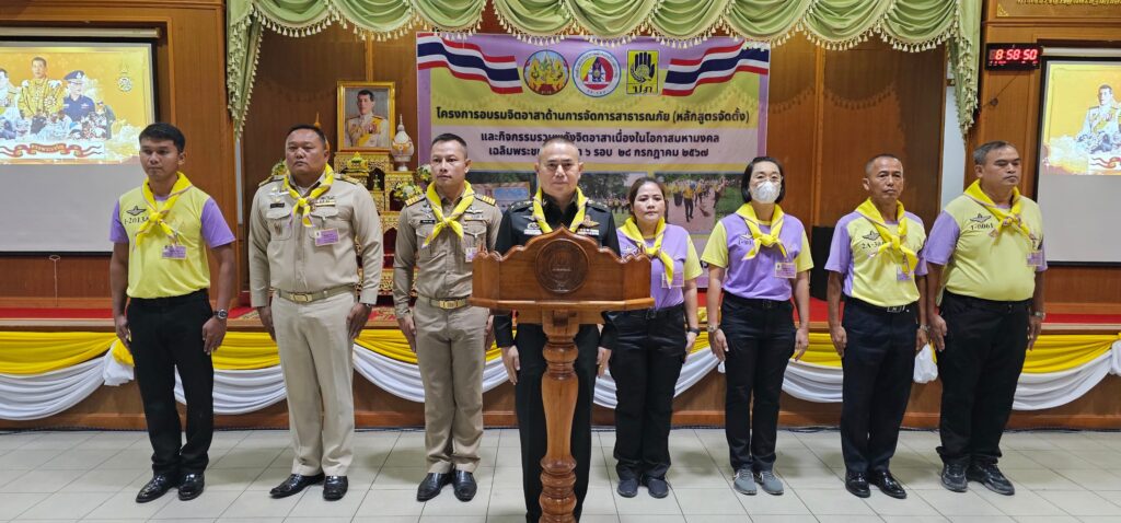 วันที่ 7 มิถุนายน 2567 เวลา 09.00 น. ณ สโมสรนายทหารมณฑลทหารบกที่ 13 อำเภอเมืองลพบุรี จังหวัดลพบุรี พันเอกเฉลิมเกียรติ ลาดมะโรง รองผู้อำนวยการกองอำนวยการรักษาความมั่นคงภายในจังหวัดลพบุรี(ฝ่ายทหาร) เป็นประธานในพิธีเปิดโครงการอบรมจิตอาสาด้านการป้องกันและบรรเทาสาธารณภัยระดับอำเภอ (หลักสูตรจัดตั้ง) รุ่นที่ 7/2567 ประจำปี 2567 ระหว่างวันที่ 7-9 มิถุนายน 2567 โดยมี นายวิรพัฒน์ อ่อนสุระทุม หัวหน้าสำนักงานป้องกันและบรรเทาสาธารณภัยจังหวัดลพบุรี พร้อมด้วยส่วนราชการ วิทยากรจิตอาสา 904 เจ้าหน้าที่และผู้เข้ารับการอบรม จำนวน 50 คนเข้าร่วมในพิธีครั้งนี้