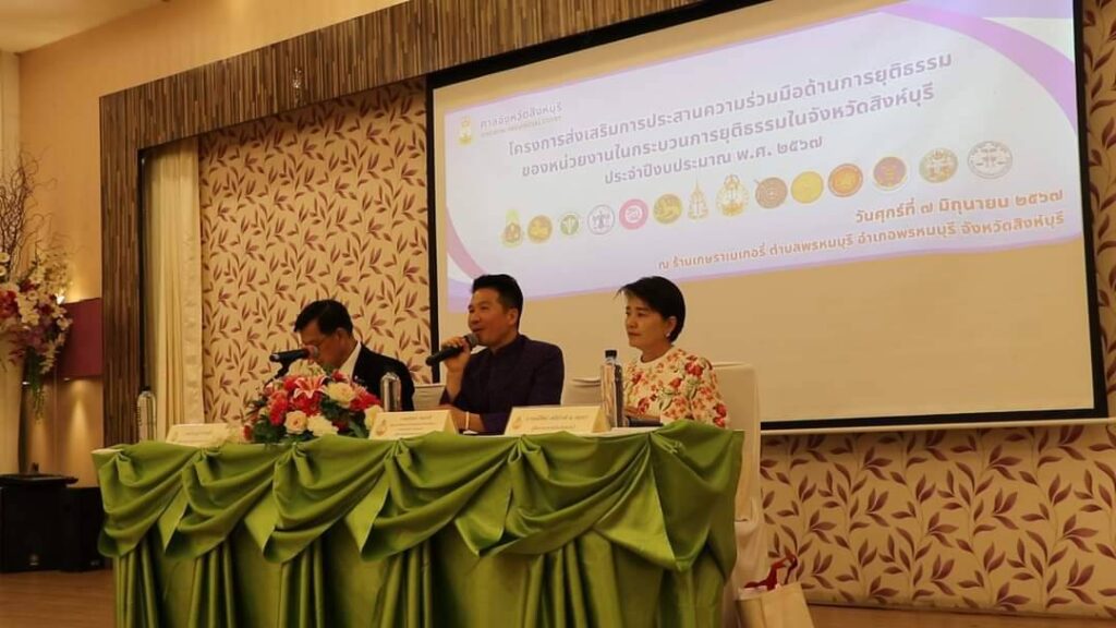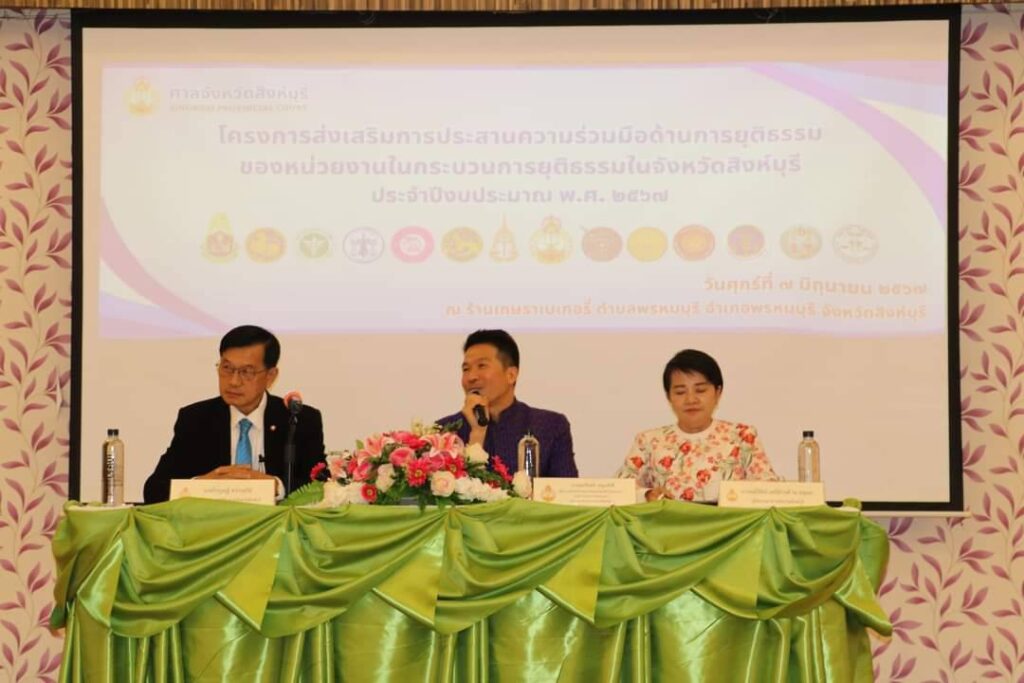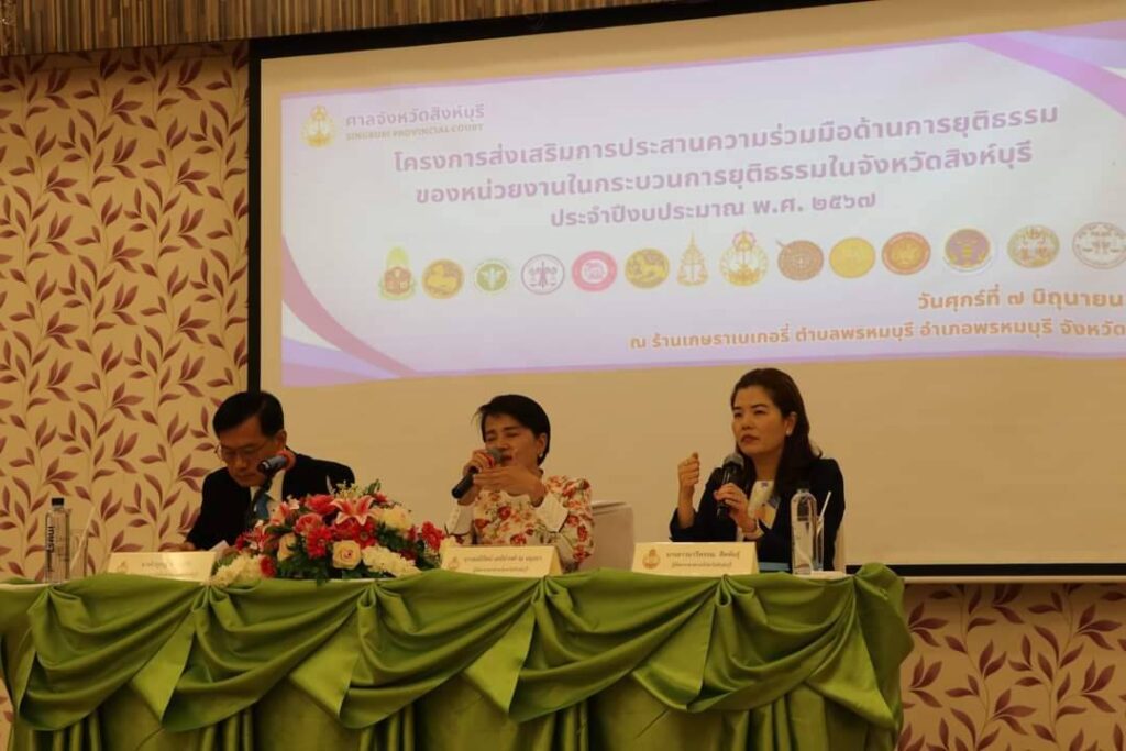 วันที่ 7 มิถุนายน 2567 นายเอกรินทร์ หนุนภักดี ผู้พิพากษาหัวหน้าศาลจังหวัดสิงห์บุรี เป็นประธานเปิดโครงการส่งเสริมการประสานความร่วมมือ ด้านการยุติธรรมของหน่วยงานในกระบวนการยุติธรรมในจังหวัดสิงห์บุรี ปี 2567 ณ ร้านเกษราเบเกอรี่ ตำบลพรหมบุรี โดยมีนางจริยา ขันธ์ดวง ผู้อำนวยการสำนักอำนวยการประจำศาลจังหวัดสิงห์บุรี จัดโครงการมีวัตถุประสงค์เพื่อให้ผู้เข้าร่วมโครงการได้รับความรู้ความเข้าใจเกี่ยวกับกฎหมายใหม่ที่สำคัญและประชาสัมพันธ์กระบวนการทำงานของศาลยุติธรรมตลอดจนเพื่อให้หน่วยงานในกระบวนการยุติธรรมและหน่วยงานที่เกี่ยวข้องได้แลกเปลี่ยนความคิดเห็นข้อเสนอแนะและการขอความร่วมมือระหว่างหน่วยงานอันเป็นการร่วมกันแก้ไขปัญหา ข้อขัดข้องในการปฏิบัติงาน ระหว่างหน่วยงานและพัฒนากระบวนการยุติธรรมอย่างเป็นระบบต่อเนื่องเกิดประโยชน์สูงสุดต่อประชาชน