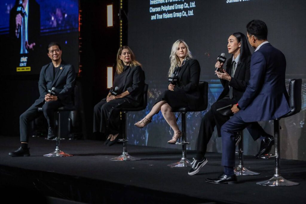 โรงแรมวอลดอร์ฟ แอสโทเรีย กรุงเทพฯ : วัน แชมเปียนชิพ (ONE) องค์กรศิลปะการต่อสู้ที่ยิ่งใหญ่ที่สุดในโลก ได้จัดงานสัมมนาเชิงธุรกิจกีฬาสุดยิ่งใหญ่ ใน หัวข้อ THE KING OF CONTENT ที่รวมผู้บริหารจากแวดวงต่างๆ นักธุรกิจ-อุตสาหกรรมชั้นนำของเมืองไทยอย่างมากมาย