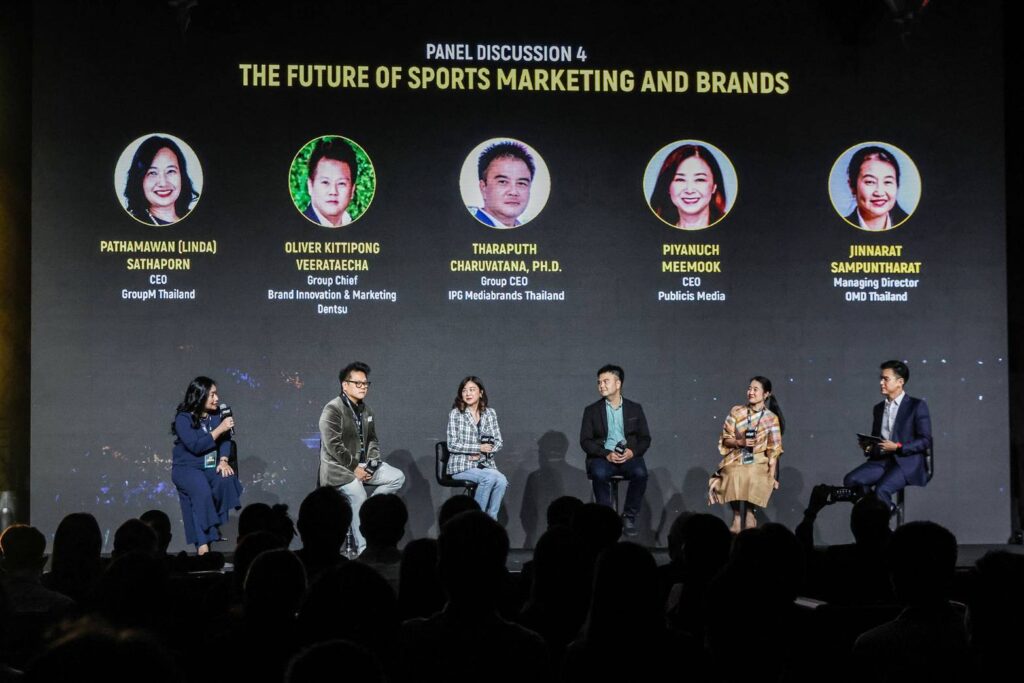 เรื่องที่ 5 หัวข้อ “อนาคตของ Sport Marketing และ Brands” ผู้ร่วมอภิปราย ได้แก่ ปัทมวรรณ สถาพร CEO Group M ประเทศไทย,โอลิเวอร์ กิตติพงษ์ วีระเตชะ ประธานเจ้าหน้าที่บริหาร กลุ่มการตลาดและนวัตกรรม เดนท์สุ ประเทศไทย, ปิยนุช มีมุก CEO ปับลิซิส มีเดีย, ดร.ธราภุช จารุวัฒนะ ไอพีจี มีเดียแบรนด์ส ประเทศไทย