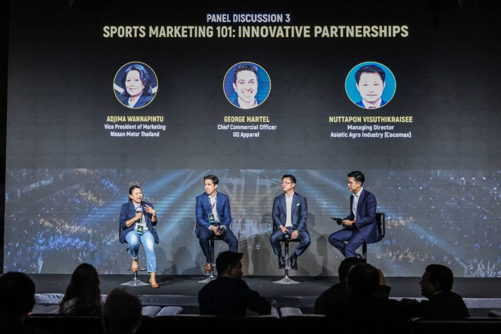 เรื่องที่ 4 หัวข้อ “Sport Marketing101: พาร์ทเนอร์ทางด้านนวัตกรรม” ผู้ร่วมอภิปราย ได้แก่ มาซาโอะ ซูมิ รองประธานอาวุโสฝ่ายการผลิต และการจัดการซัพพลายเชน นิสสัน ประเทศไทย,จอร์จ ฮาเทล ประธานเจ้าหน้าที่บริหารฝ่ายการตลาด GQ Apparel,ณัฐพล วิสุทธิไกรสีห์ กรรมการผู้จัดการ บริษัท เอเซียติค อุตสาหกรรมเกษตร จำกัด (Cocomax)