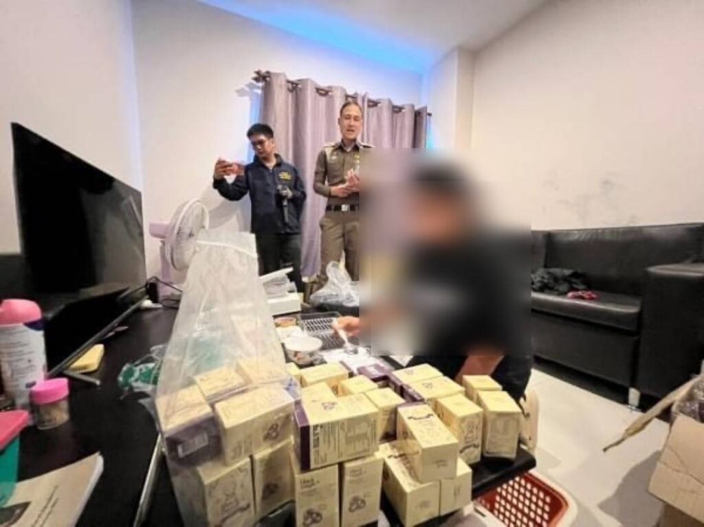 สอท. ร่วม สสจ.ชลบุรี บุกทลายรังผลิตกลูต้าปลอม นั่งหยอดแคปซูลในคอนโดฯ กลางเมืองบางละมุง ผงะ! งานแฮนด์เมดแต่ไม่รู้มีส่วนผสมอะไรบ้าง