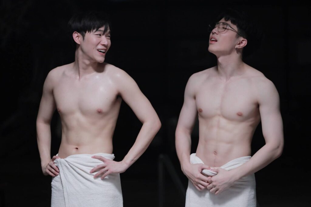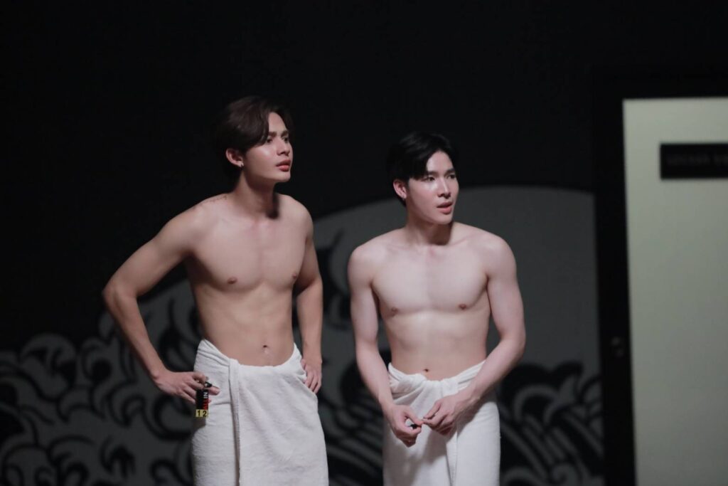 เรามีเบื้องหลังมาเรียกน้ำจิ้มกันก่อน โดยทีมงานใช้ ออนเซ็น แห่งหนึ่งย่านปทุมธานีเป็นสถานที่ถ่ายทำ ซึ่งฉากนี้หนุ่มๆ จะต้องโชว์หุ่นแบบฟิตเปรี๊ยะ โดยก่อนถ่ายทำจริง หนุ่มๆ ทั้ง เจ้านาย, เบส, เซ้ง, โนเกีย และ ภัค ก็ขอฟิตหุ่นตัวเองให้กล้ามเป็นมัดๆ ด้วยการซิทอัพ อัพแอนด์ดาวน์กันคนละยก เพื่อกล้ามเนื้อที่สวยงาม พร้อมกับซ้อมบทไดอะล็อกไปในตัวด้วย