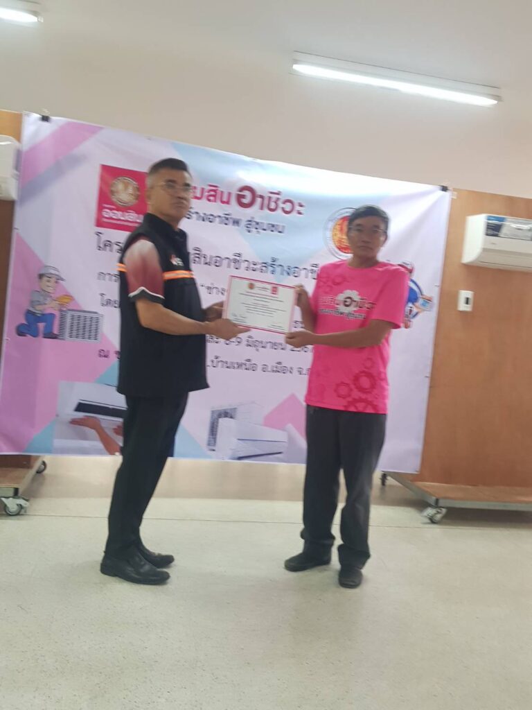 เมื่อเสร็จสิ้นการอบรบจะได้ใบประกาศ และสามารถยื่นกู้กับธนาคารออมสิน สาขากาญจนบุรีได้เงื่อนไขเป็นไปตามที่ธนาคานกำหนด