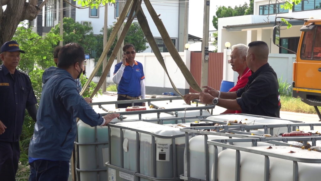 นายพงษ์ศิริ อุปพงษ์ อายุ 64 ปี กรรมการหมู่บ้านเดอะลากูน กล่าวว่า ถังสารเคมีเหล่านี้เจ้าของที่ดินแปลงดังกล่าวเขาได้นำมาไว้เมื่อเดือนเมษายน พ.ศ.2565 ทางเราและชาวบ้านก็ไม่รู้ว่าเป็นอะไร และนานแล้วไม่เคลื่อนย้ายไปไหน ทางเราได้ติดต่อเจ้าของแปลงเพื่อให้เขาช่วยยกออกไป แต่เขาก็ไม่ใส่ใจ โทรไปก็มีแต่ตัวแทนรับสาย ที่ผ่านมาคณะกรรมการฯได้ทำเรื่องรวมถึงแจ้งความที่ สภ.สามโคก และอุตสาหกรรมจังหวัดก็เข้ามาดู แต่เขาก็ไม่กล้าทำอะไรเพราะว่าเป็นพื้นที่ส่วนบุคคล แม้แต่ตัวอย่างเขายังไม่กล้าเอาไปเลยว่าเป็นสารอะไร.
