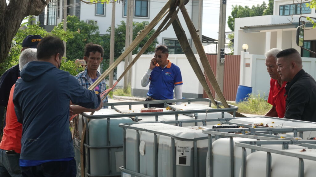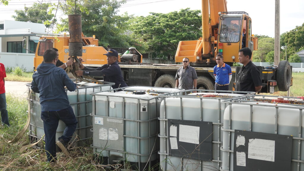 เมื่อเวลา 09.30 น. วันที่ 9 มิถุนายน 2567 ที่บริเวณกลางหมู่บ้านเดอะลากูน ตำบลท้ายเกาะ อำเภอสามโคก จังหวัดปทุมธานี พล.ต.ท.คำรณวิทย์ ธูปกระจ่าง อดีตนายก อบจ.ปทุมธานี ได้รับเรื่องร้องเรียนจากชาวบ้านว่าพบถังสารเคมีจำนวน11 ถัง ถังละ 1,000 ลิตร รวม11ตันตั้งทิ้งไว้บริเวณกลางหมู่บ้านเดอะลากูน ใกล้ทะเลสาบกลางหมู่บ้านเนื่องจากชาวบ้านกลัวว่าถังสารเคมีจะชำรุดเพราะทิ้งไว้นาน 2 ปีแล้วอาจจะไหลลงแหล่งน้ำของหมู่บ้านอละอาจไหลลงแม่น้ำลำคลองต่อไปได้