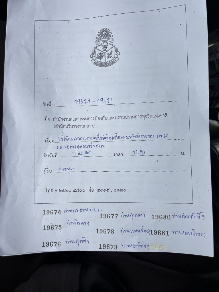 จึงเรียนมาเพื่อโปรดพิจารณาดำเนินการตามอำนาจหน้าที่และกฎหมาย ป.ป.ช. ต่อไป หากผลเป็นประการใดโปรดแจ้งให้ทราบข้าพเจ้าและพี่น้องประชาชนทราบภายใน ๑๕ วันด้วย