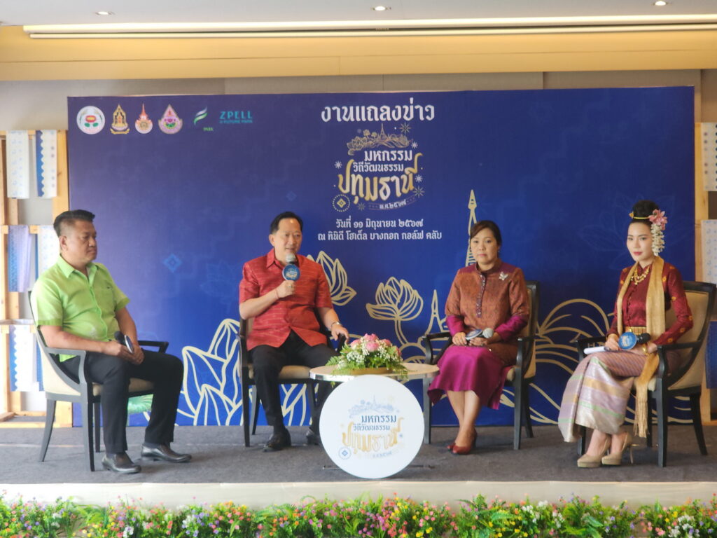 วันที่ 11 มิถุนายน 2567 ที่โรงแรมทินิดี โฮเต็ล บางกอก กอล์ฟคลับ ตำบลบางกะดี อำเภอเมือง จังหวัดปทุมธานี นายภาสกร บุญญลักษม์ ผู้ว่าราชการจังหวัดปทุมธานี , นางลัษมา ธารีเกษ วัฒนธรรมจังหวัดปทุมธานี , ผู้ช่วยศาสตราจารย์บรรทม น่วมศิริ รองคณบดีฝ่ายบริหารและวางแผน มหาวิทยาลัยเทคโนโลยีราชมงคลธัญบุรี ร่วมแถลงข่าวงานมหกรรมวิถีวัฒนธรรมปทุมธานี จัดขึ้นระหว่างวันที่ 19 – 23 มิถุนายน 2567 ณ ศูนย์การค้า ฟิวเจอร์พาร์คและสเปลล์ อำเภอธัญบุรี จังหวัดปทุมธานี