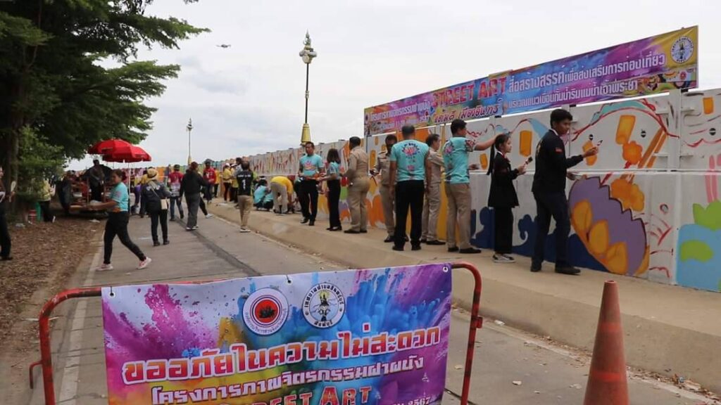 นายศุภวัฒน์ เทียนถาวร นายกองค์การบริหารส่วนจังหวัดสิงห์บุรี ร่วมกับเทศบาลตำบลอินทร์บุรี จัดกิจกรรมภาพจิตรกรรมฝาผนัง Street Art สื่อสร้างสรรค์เพื่อส่งเสริมการท่องเที่ยวแต้มสีเมืองอินทร์ ณ ศาลาพระอินทมุนี วัดโพธิ์ลังการ์ และบริเวณแนวเขื่อนกั้นน้ำริมแม่น้ำเจ้าพระยา เทศบาลตำบลอินทร์บุรี โดยมี นายสมศักดิ์ เกี้ยวเกิด นายอำเภออินทร์บุรี การท่องเที่ยวลพบุรี-สิงห์บุรี สมาชิกสภา อบจ.สิงห์บุรี ภาครัฐ ภาคเอกชน สถานศึกษา และประชาชนเป็นศิลปินอาสาสมัคร จำนวนกว่า 100 คน ร่วมแต้มสีเพื่อสร้างสรรค์ภาพจิตรกรรมฝาผนัง Street Art ให้เกิดเป็นแหล่งท่องเที่ยวแห่งใหม่ของเมืองรองในพื้นที่เทศบาลตำบลอินทร์บุรี รวมระยะทางประมาณ 1.88 กิโลเมตร