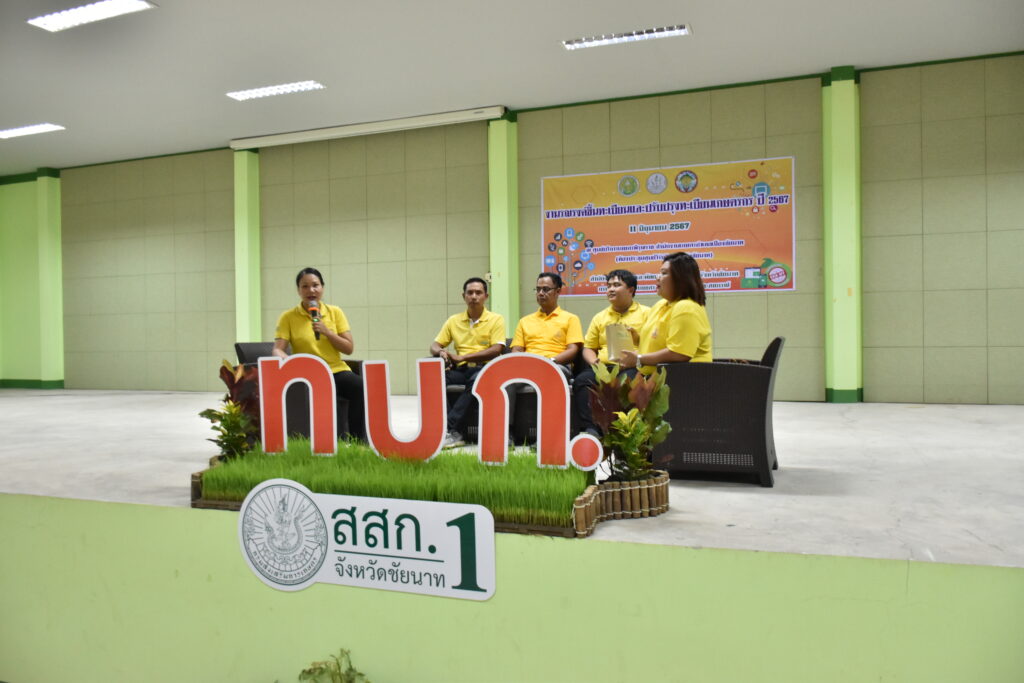 วันที่ 11 มิถุนายน 2567 เวลา 10.00 น. ณ ศูนย์บริการเกษตรพิรุณราช สำนักงานเกษตรอำเภอเมืองชัยนาท จังหวัดชัยนาท สำนักงานส่งเสริมและพัฒนาการเกษตรที่ 1 จังหวัดชัยนาทได้จัดงานแถลงข่าวการขึ้นทะเบียนและปรับปรุงทะเบียนเกษตรกร ปี 2567 ขึ้น เพื่อเป็นการ Kick off การรณรงค์ขึ้นทะเบียนและปรับปรุงทะเบียนเกษตรกร ปี 2567 โดยมีนายวิทยา ชพานนท์ รองผู้ว่าราชการจังหวัดชัยนาทเป็นประธานในพิธี และนายสุชาติ อ่อนดำ ผู้อำนวยการสำนักงานส่งเสริมและพัฒนาการเกษตรที่ 1 จังหวัดชัยนาท เป็นผู้กล่าวรายงาน ทั้งนี้ มีผู้เข้าร่วมงานฯทั้งสิ้น 124 คน ประกอบด้วย หัวหน้าส่วนราชการ เกษตรกร อาสาสมัครเกษตรหมู่บ้าน และเจ้าหน้าที่ที่เกี่ยวข้อง สำหรับกิจกรรมภายในงานประกอบด้วย 1. การเสวนาแลกเปลี่ยนเรียนรู้ “จับเข่าคุยเฟืองเรื่องทะเบียนเกษตรกร ราษฎร์-รัฐได้อะไร” 2. การให้บริการขึ้นทะเบียนและปรับปรุงทะเบียนเกษตรกร และการให้บริการด้านการเกษตรของศูนย์บริการเกษตรพิรุณราช และ 3. นิทรรศการจากหน่วยงานในสังกัดกระทรวงเกษตรและสหกรณ์ และหน่วยงานอื่นๆ ที่เกี่ยวข้อง