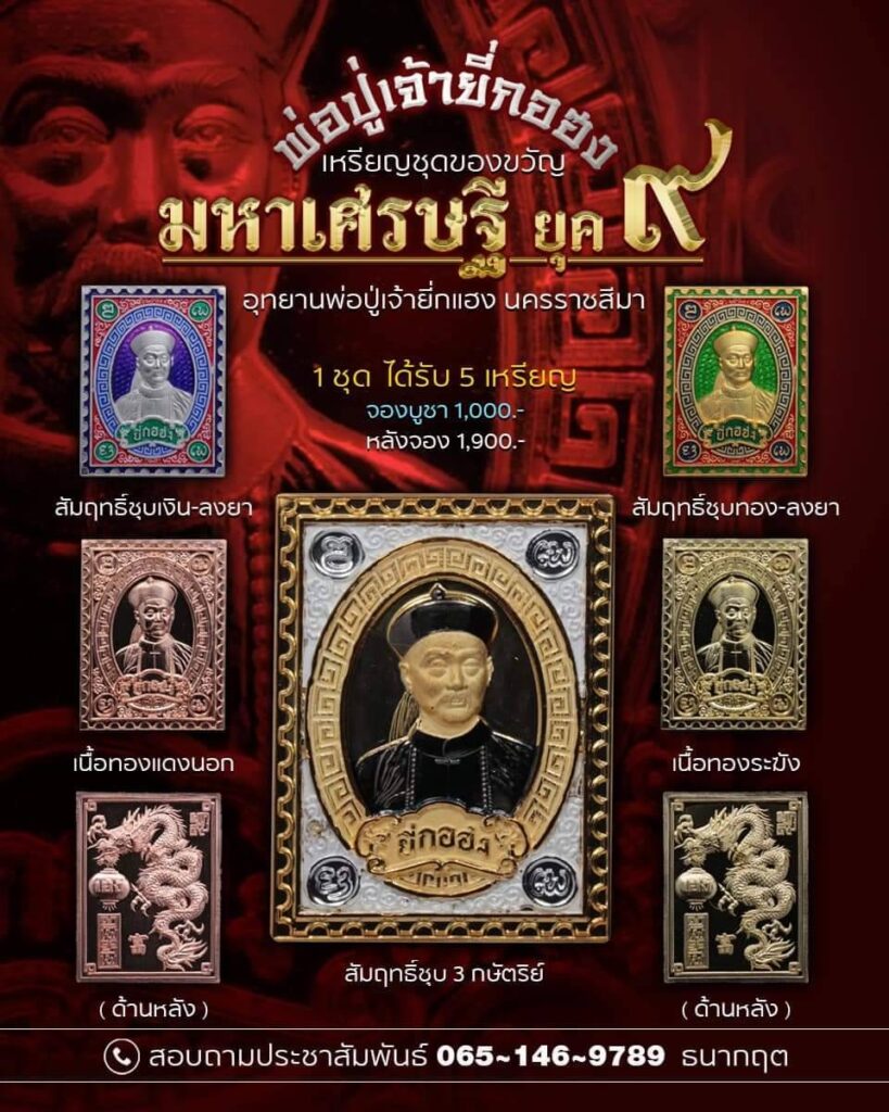 เรียกได้ว่าเป็นอีกหนึ่งพิธีมหาพุทธาภิเษกที่เข้มขลังสุดๆ ของ อุทยานพ่อปู่เจ้ายี่กอฮง จ.นครราชสีมา ที่มี คุณปู่ศักดิ์ชัย เตชะวณิช ทายาทอาวุโสรุ่นที่ 4 พ่อปู่เจ้ายี่กอฮง เป็นโต้โผใหญ่ โดยถือฤกษ์ดีวันพฤหัสบดีที่ 13 มิถุนายน 2567 จัดพิธีมหาพุทธาภิเษกวัตถุมงคล “พ่อปู่เจ้ายี่กอฮง มหาเศรษฐียุค 9” จัดสร้างตามจำนวนด้วยมวลสารแผ่นยันต์ แผ่นจารย์จากพระเกจิอาจารย์ชื่อดังตั้งแต่อดีตจนถึงปัจจุบัน มีโค๊ดมีหมายเลขทุกๆ องค์