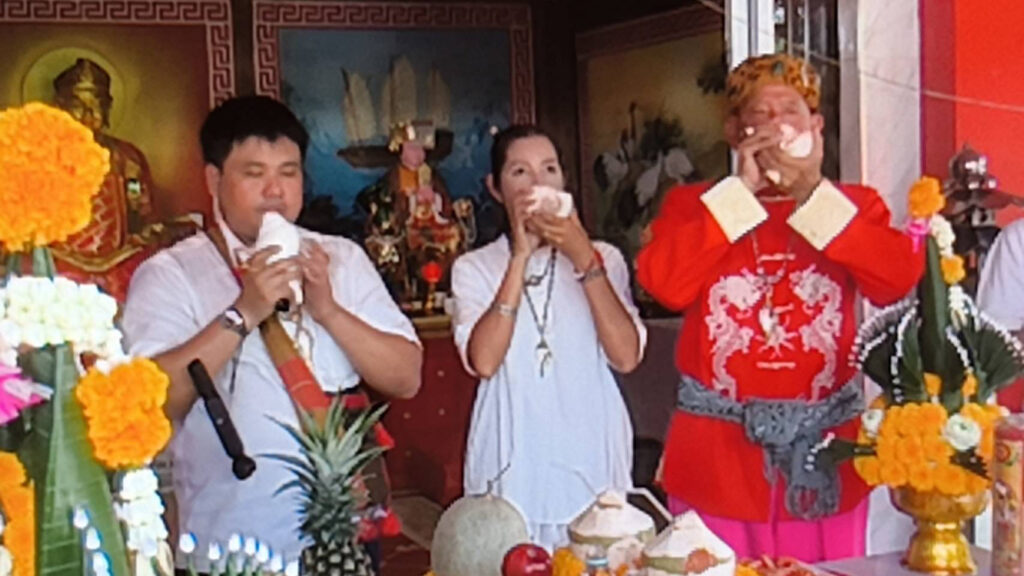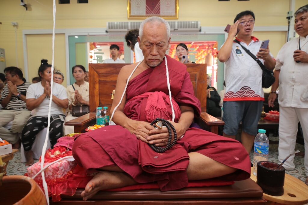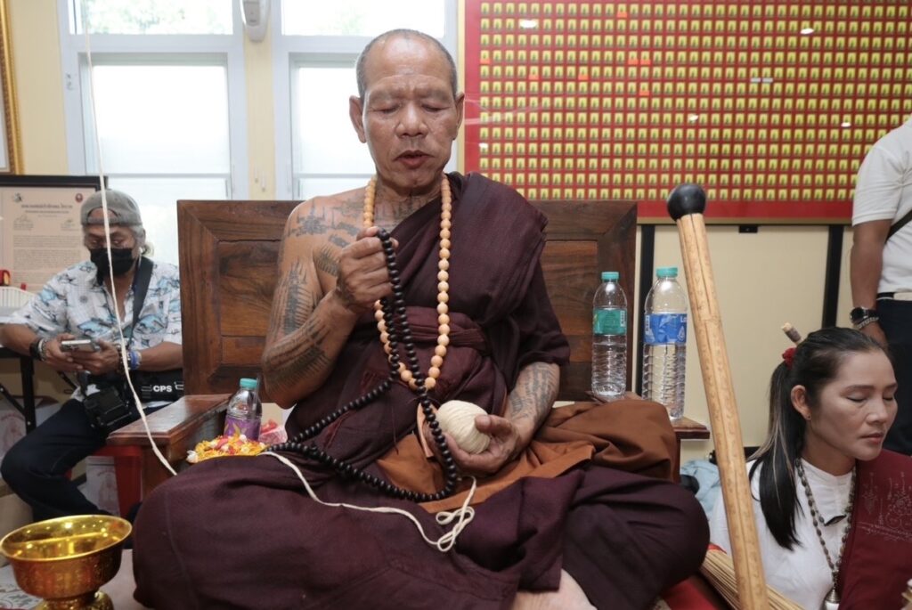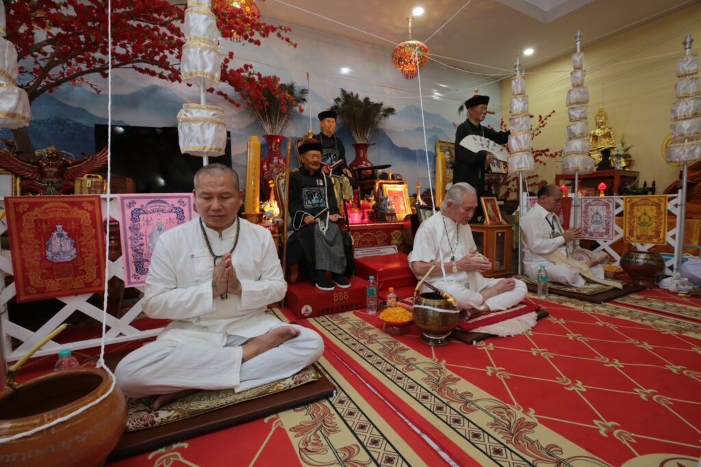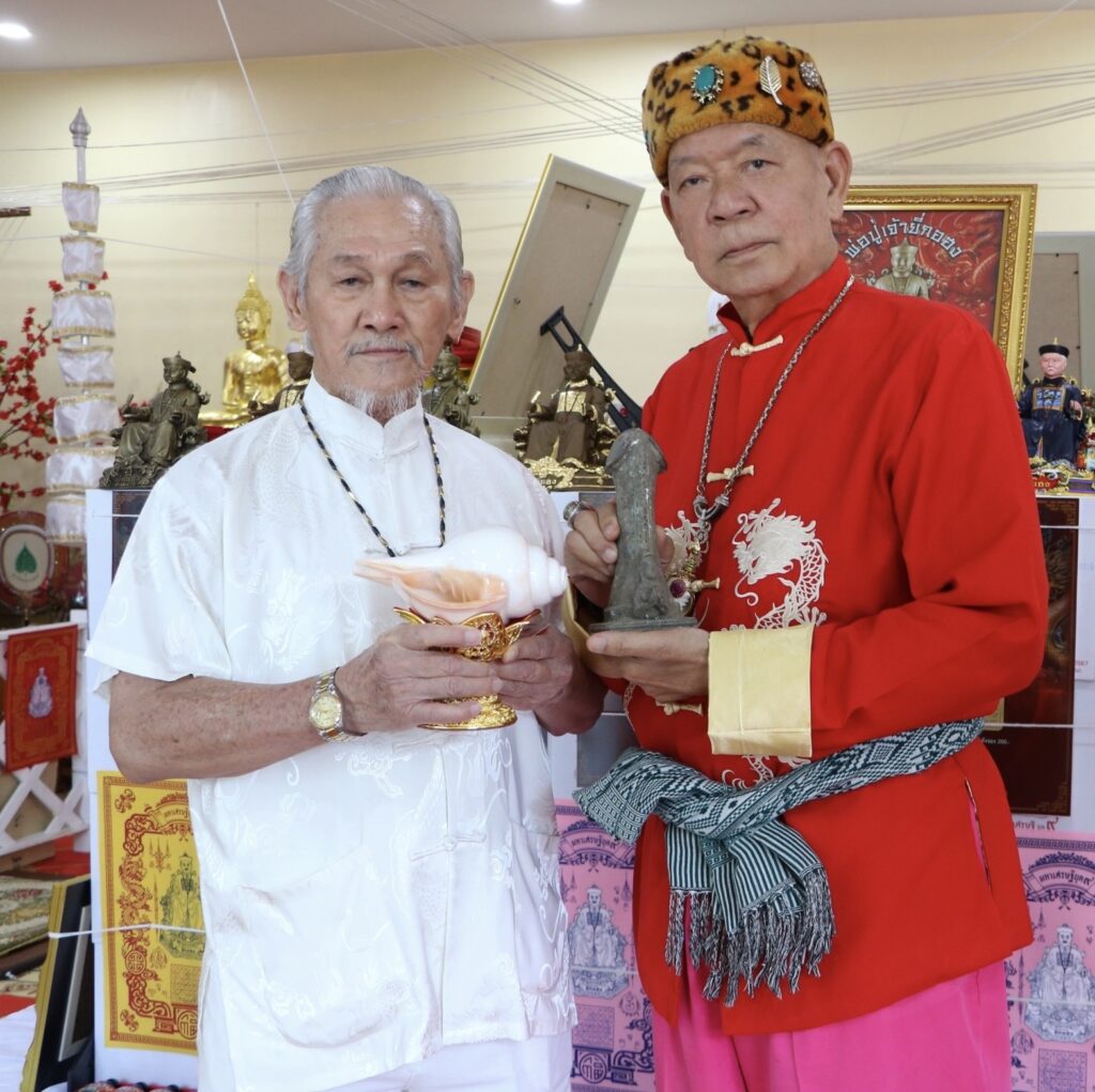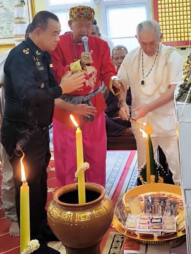 บรรยากาศภายในงานดูเข้มขลังสุดๆ เริ่มจากพิธีบวงสรวง ถวายอาหารคาวหวาน โดยมี อาจารย์วันชัย สุพรรณ, อาจารย์พิมพ์ เศรษฐีมหาลาภ, คุณเชาวฤทธิ์ หวังประกอบกุล (คุณโจ้ มหาสังข์) ร่วมเป่าสังข์เอาฤกษ์เอาชัยในงานพิธีพุทธาภิเษกครั้งนี้ด้วย