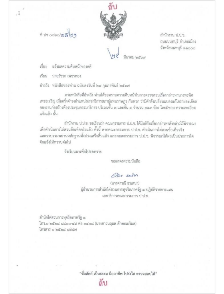 ส่วนข้อร้องเรียนนายสรศักดิ์ เพียรเวช อดีตเลขาธิการสภาผู้แทนราษฎร เกี่ยวกับการขยายเวลาก่อสร้างก่อสร้างอาคารรัฐสภาแห่งใหม่ขัดมติคณะรัฐมนตรีและเรื่องอื่น ๆ อยู่ในระหว่างการพิจารณาของ ปปช.ที่เป็นไปด้วยความล่าช้าอย่างมาก