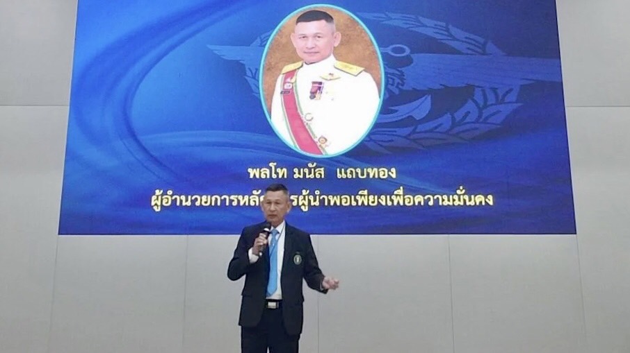 พลโท มนัส แถบทอง ผู้อำนวยการหลักสูตร ผู้นำพอเพียงเพื่อความมั่นคง ชี้แจงขั้นตอนการอบรมหลักสูตรผู้นำพอเพียงเพื่อความมั่นคง รุ่นที่ 17 ให้นักศึกษาที่เดินทางมารายงานตัว ที่สถาบันวิชาการป้องกันประเทศ โดยชี้แจงรายละเอียดเกี่ยวกับหลักสูตร รวมถึงมีการจับสลากหมู่เพื่อแบ่งกลุ่มการจัดทำงานวิชาการเพื่อเสริมสร้างความมั่นคงในมิติต่างๆ
