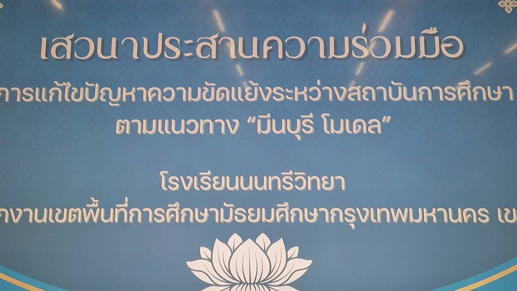 ผอ.สำนักงานบริหารอาคารและสถานที่ ม.เทคโนโลยีพระจอมเกล้าธนบุรี วิทยาเขตบางขุนเทียน นายทินกร ปลอดภัย เลขาธิการปกครองส่วนท้องถิ่น รูปแบบพิเศษ สภาผู้แทนราษฎร์ (ตัวแทนศิษย์เก่าอาชีวะ) ผกก., รอง ผกก.ป.สน. ที่เกี่ยวข้อง ผู้แทนสถาบันการศึกษาที่เกี่ยวข้องรวมทั้งสิ้น 90 นาย ประชุมเสวนาประสานความร่วมมือ ในการแก้ไขปัญหาความขัดแย้งระหว่างสถาบันการศึกษา ตามแนวทาง “มีนบุรีโมเดล“