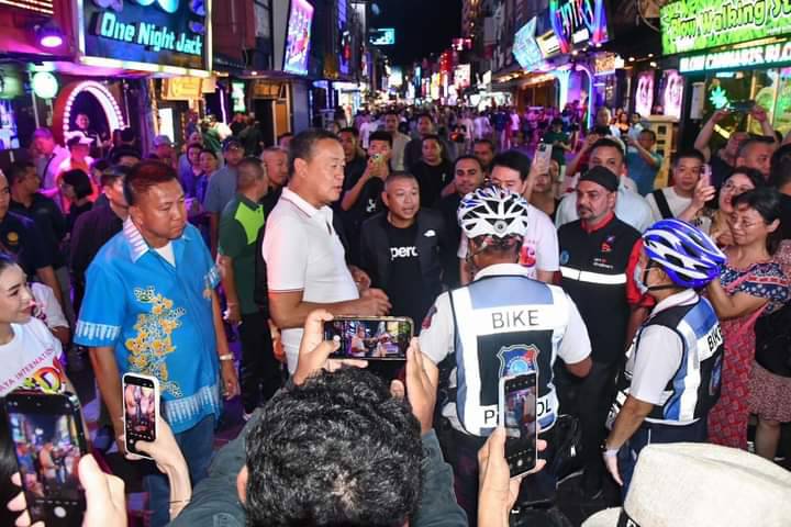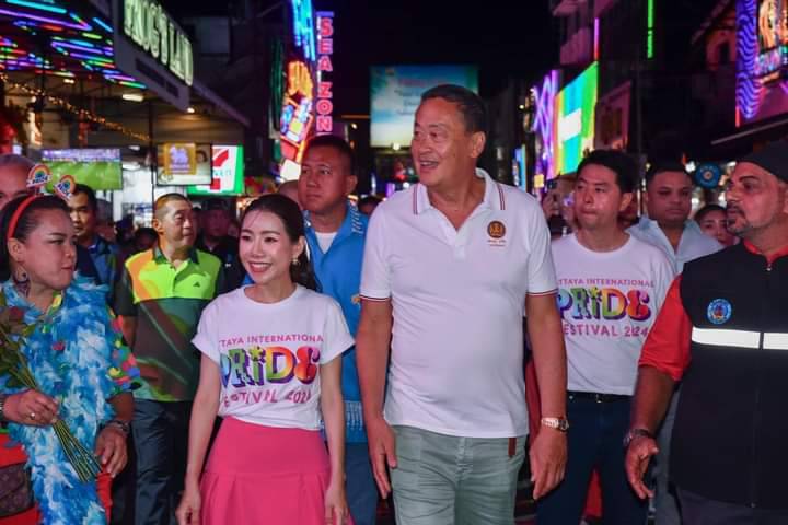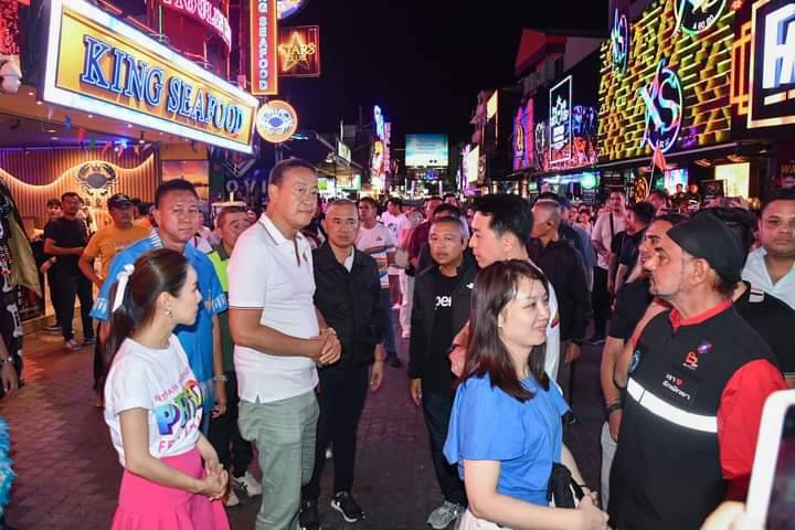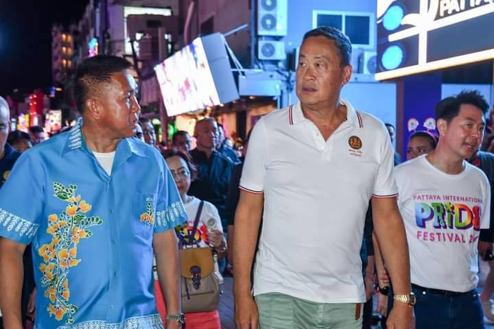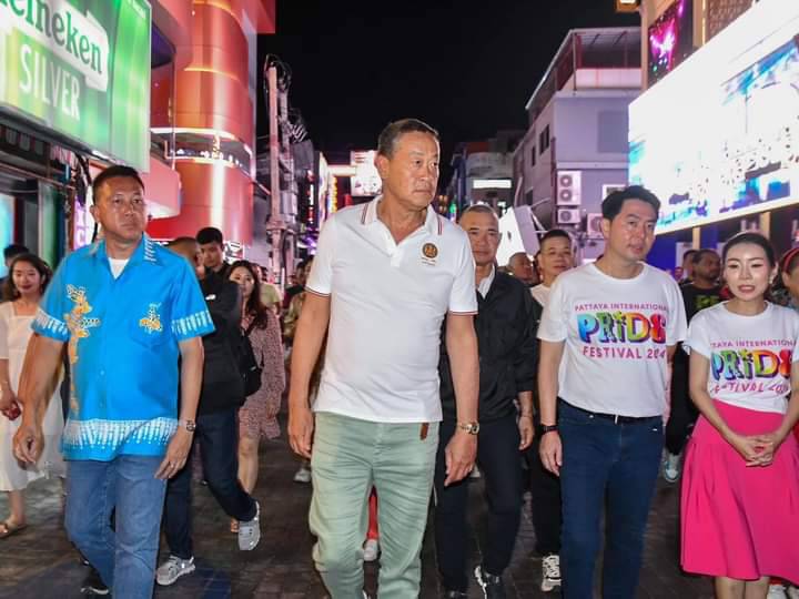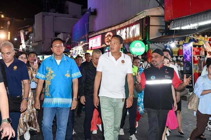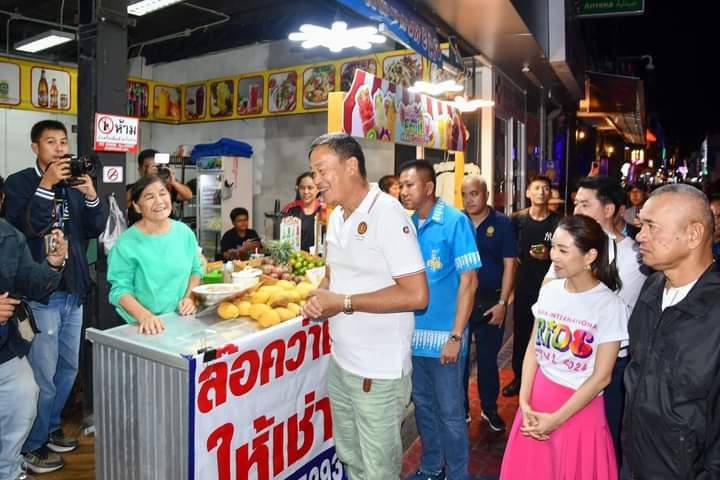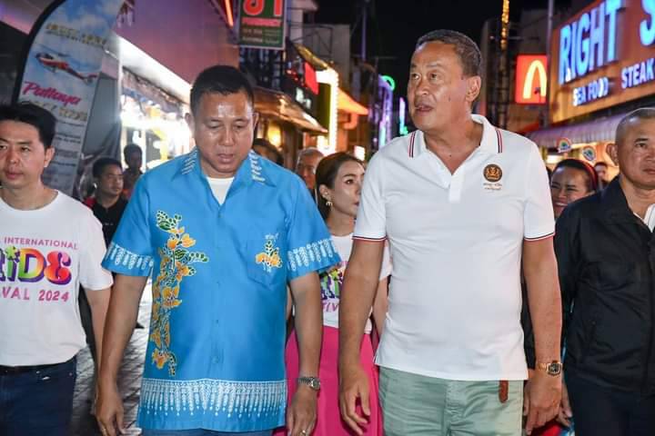 วันเสาร์ที่ 22 มิถุนายน 2567 เวลา 20.30 น. นายเศรษฐา ทวีสิน นายกรัฐมนตรี และคณะ ลงพื้นที่ตรวจเยี่ยมให้กำลังใจพร้อมพูดคุยเกี่ยวกับสถานการณ์การท่องเที่ยวในเมืองพัทยา ในการนี้มีนายธวัชชัย ศรีทอง ผู้ว่าราชการจังหวัดชลบุรี พลตำรวจโท สมประสงค์ เย็นท้วม ผู้บัญชาการตำรวจภูธรภาค 2 พล.ต.ต.ธวัชเกียรติ จินดาควรสนอง ผู้บังคับการตำรวจภูธรจังหวัดชลบุรี นายวีกิจ มานะโรจน์กิจ นายอำเภอบางละมุง นายปรเมศวร์ งามพิเชษฐ์ นายกเมืองพัทยา และเจ้าหน้าที่หน่วยงานความมั่นคง ร่วมลงพื้นที่ ณ บริเวณถนนคนเดินพัทยา Walking Street เมืองพัทยา อำเภอบางละมุง จังหวัดชลบุรี